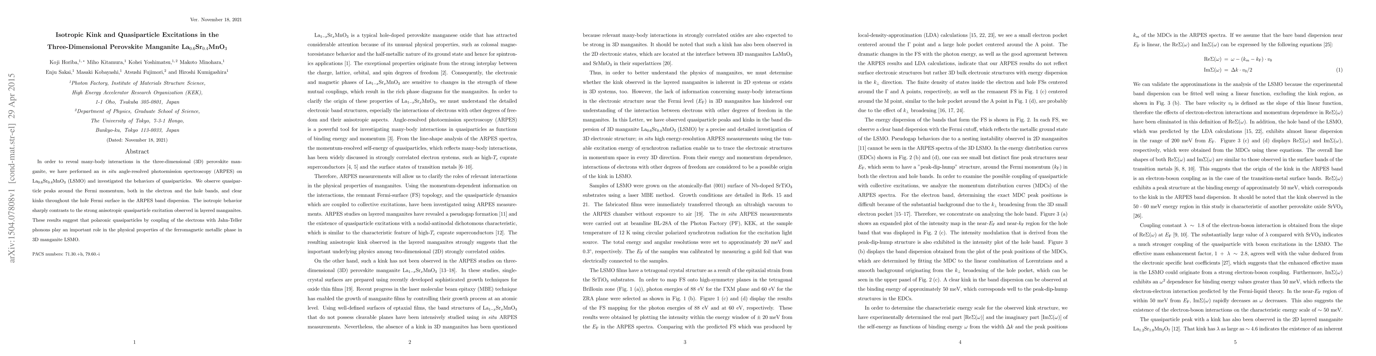 This study uses in situ angle-resolved photoemission spectroscopy to investigate quasiparticle excitations in the 3D perovskite manganite La$_{0.6}$Sr$_{0.4}$MnO$_3$, revealing isotropic kinks and quasiparticle peaks, contrasting with the anisotropic behavior in layered manganites. The findings suggest that polaronic quasiparticles, formed by electron-Jahn-Teller phonon coupling, significantly influence the ferromagnetic metallic phase in LSMO.