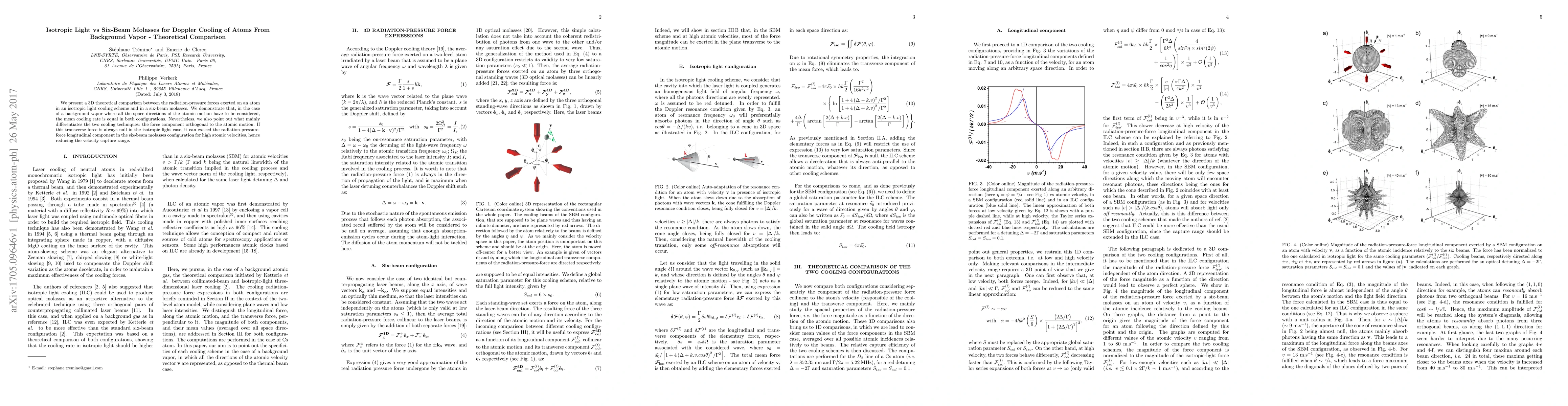This paper theoretically compares isotropic light cooling with six-beam molasses for atom cooling in background vapor, finding equal mean cooling rates but noting that six-beam molasses can have a transverse force that exceeds its longitudinal component at high velocities, thus limiting the capture range.