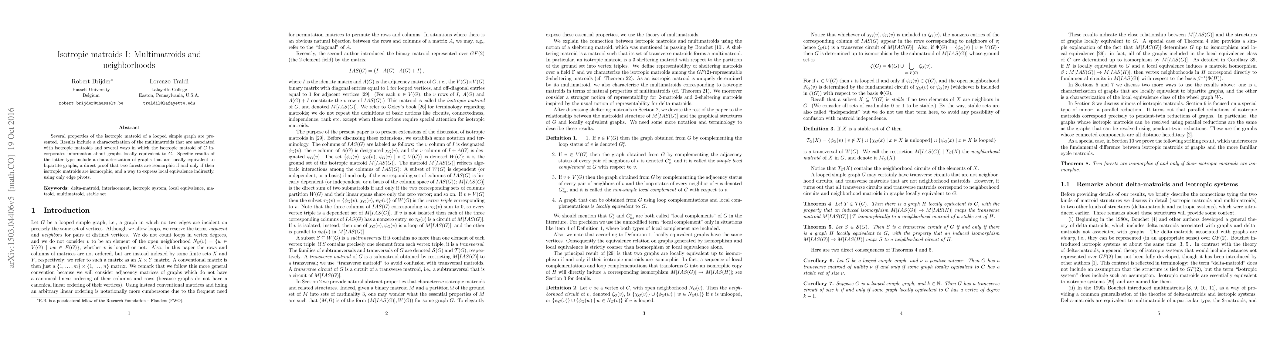 The paper explores properties of isotropic matroids in looped simple graphs, including characterizations of multimatroids and methods to analyze local equivalence, with applications to bipartite graphs and forests.