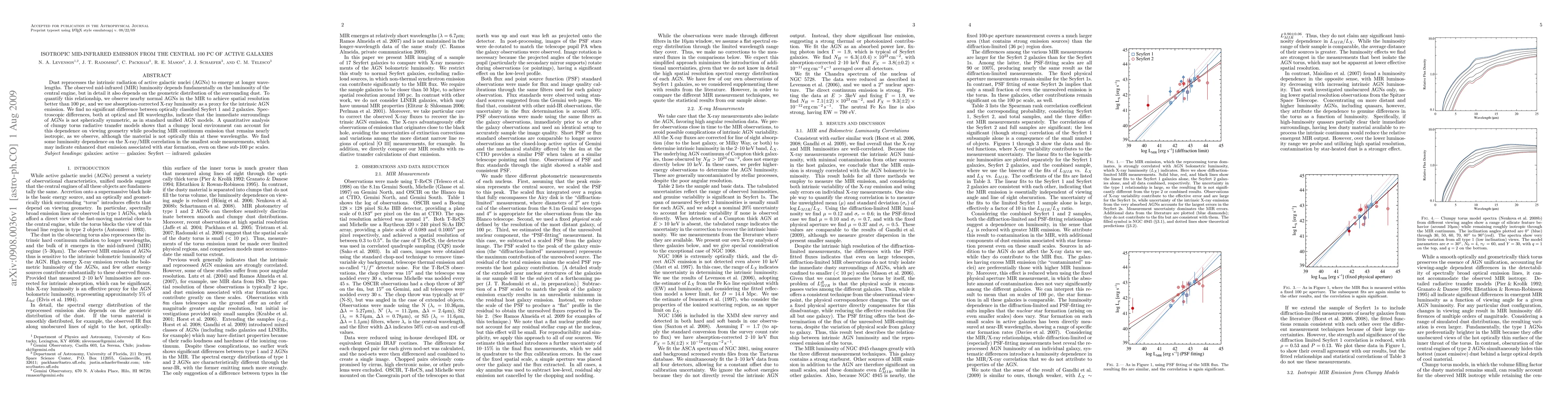 Dust reprocesses the intrinsic radiation of active galactic nuclei (AGNs) to emerge at longer wavelengths. The observed mid-infrared (MIR) luminosity depends fundamentally on the luminosity of the central engine, but in detail it also depends on the geometric distribution of the surrounding dust. To quantify this relationship, we observe nearby normal AGNs in the MIR to achieve spatial resolution better than 100 pc, and we use absorption-corrected X-ray luminosity as a proxy for the intrinsic AGN emission. We find no significant difference between optically classified Seyfert 1 and 2 galaxies. Spectroscopic differences, both at optical and IR wavelengths, indicate that the immediate surroundings of AGNs is not spherically symmetric, as in standard unified AGN models. A quantitative analysis of clumpy torus radiative transfer models shows that a clumpy local environment can account for this dependence on viewing geometry while producing MIR continuum emission that remains nearly isotropic, as we observe, although the material is not optically thin at these wavelengths. We find some luminosity dependence on the X-ray/MIR correlation in the smallest scale measurements, which may indicate enhanced dust emission associated with star formation, even on these sub-100 pc scales.