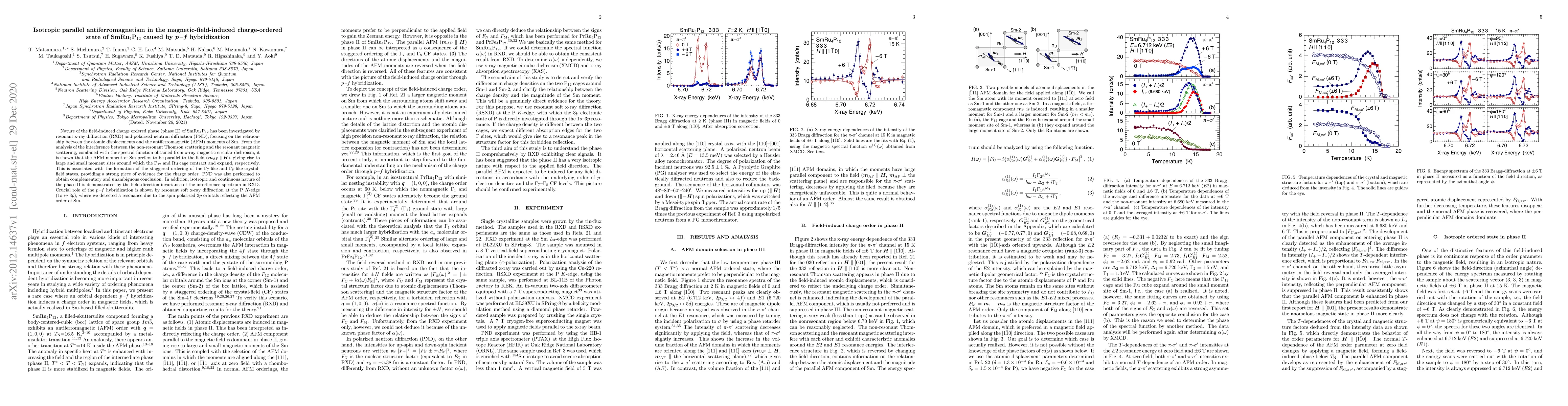 Nature of the field-induced charge ordered phase (phase II) of SmRu$_4$P$_{12}$ has been investigated by resonant x-ray diffraction (RXD) and polarized neutron diffraction (PND), focusing on the relationship between the atomic displacements and the antiferromagnetic (AFM) moments of Sm. From the analysis of the interference between the non-resonant Thomson scattering and the resonant magnetic scattering, combined with the spectral function obtained from x-ray magnetic circular dichroism, it is shown that the AFM moment of Sm prefers to be parallel to the field ($m_{\text{AF}} \parallel H$), giving rise to large and small moment sites around which the P$_{12}$ and Ru cage contract and expand, respectively. This is associated with the formation of the staggered ordering of the $\Gamma_7$-like and $\Gamma_8$-like crystal-field states, providing a strong piece of evidence for the charge order. PND was also performed to obtain complementary and unambiguous conclusion. In addition, isotropic and continuous nature of the phase II is demonstrated by the field-direction invariance of the interference spectrum in RXD. Crucial role of the $p$-$f$ hybridization is shown by resonant soft x-ray diffraction at the P $K$-edge ($1s\leftrightarrow 3p$), where we detected a resonance due to the spin polarized $3p$ orbitals reflecting the AFM order of Sm.