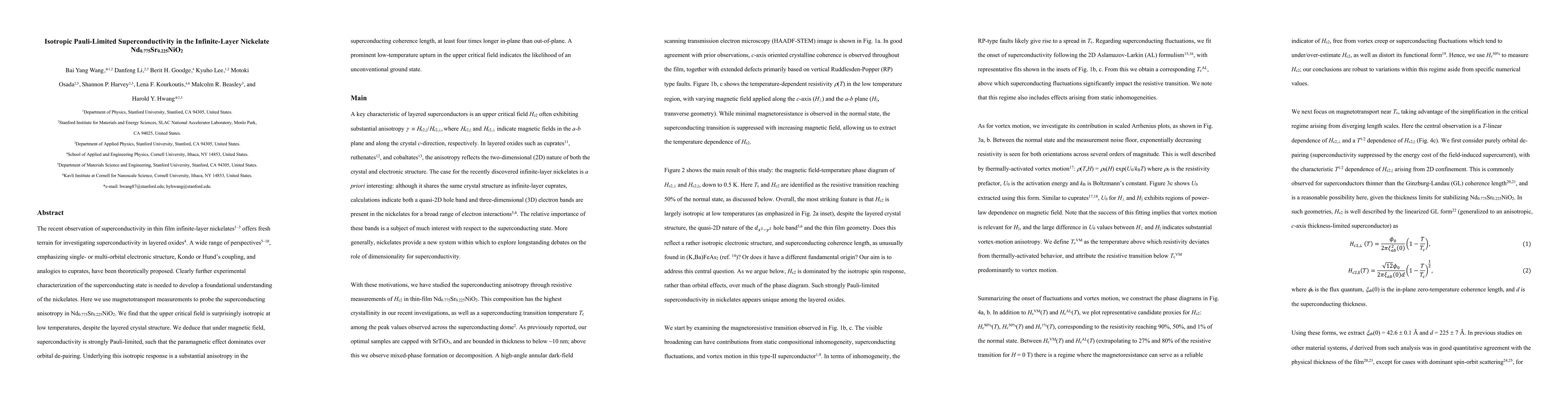 The recent observation of superconductivity in thin film infinite-layer nickelates$^{1-3}$ offers a different angle to investigate superconductivity in layered oxides$^{4}$. A wide range of candidate models have been proposed$^{5-10}$, emphasizing single- or multi-orbital electronic structure, Kondo or Hund's coupling, and analogies to cuprates. Clearly, further experimental characterization of the superconducting state is needed to develop a full understanding of the nickelates. Here we use magnetotransport measurements to probe the superconducting anisotropy in Nd$_{0.775}$Sr$_{0.225}$NiO$_{2}$. We find that the upper critical field is surprisingly isotropic at low temperatures despite the layered crystal structure. In a magnetic field the superconductivity is strongly Pauli-limited, such that the paramagnetic effect dominates over orbital de-pairing. Underlying this isotropic response is a substantial anisotropy in the superconducting coherence length, which is at least four times longer in-plane than out-of-plane. A prominent low-temperature upturn in the upper critical field indicates the presence of an unconventional ground state.