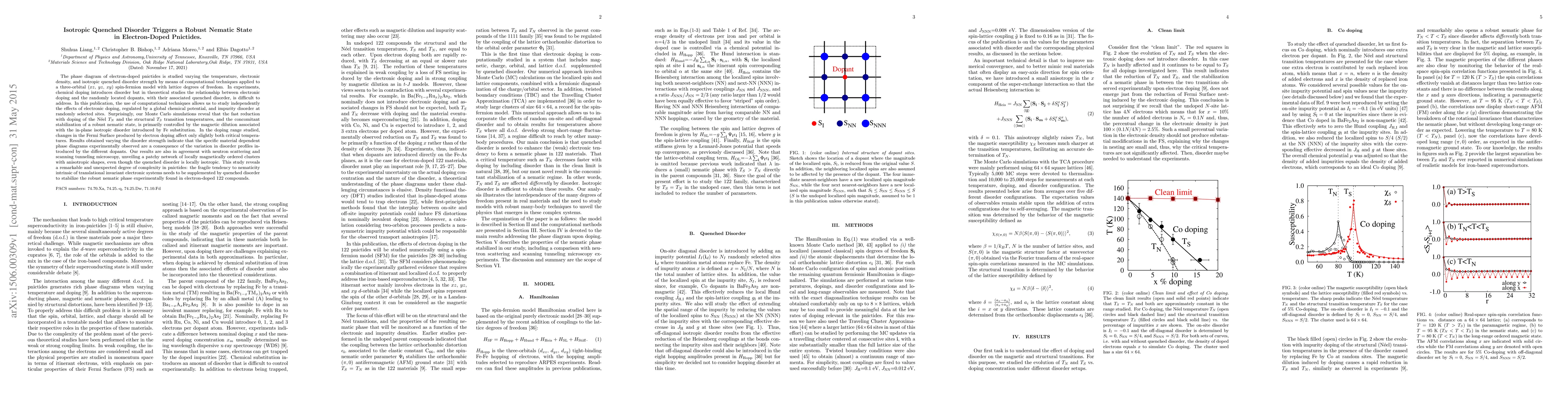 This paper investigates the interplay between electronic doping and isotropic quenched disorder in electron-doped pnictides using computational methods. Monte Carlo simulations show that the nematic state is robustly stabilized by magnetic dilution from disorder, rather than by changes in the Fermi surface due to doping.