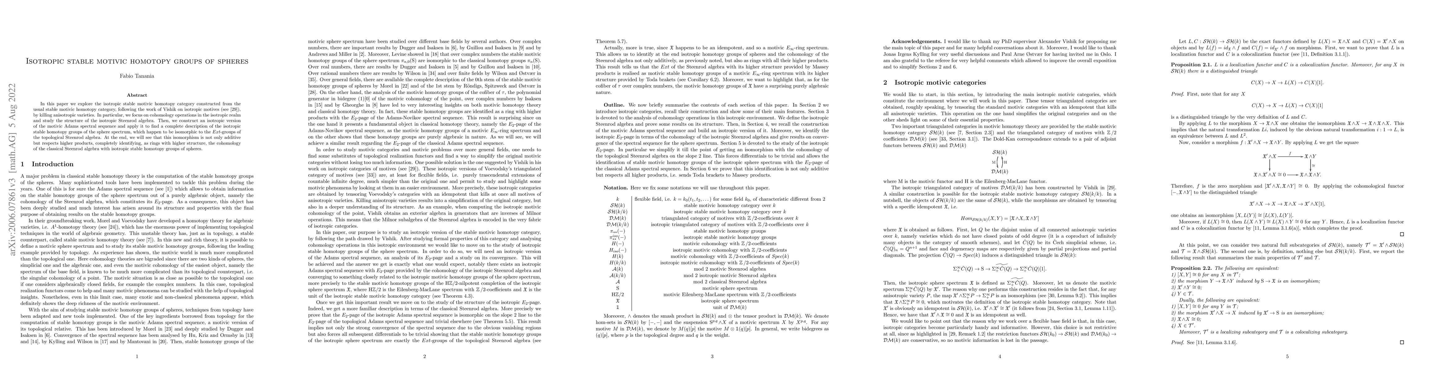 This paper constructs an isotropic stable motivic homotopy category by eliminating anisotropic varieties, investigates cohomology operations and the structure of the isotropic Steenrod algebra, and applies an isotropic motivic Adams spectral sequence to describe the isotropic stable homotopy groups of spheres, ultimately showing they are isomorphic to the $Ext$-groups of the topological Steenrod algebra.