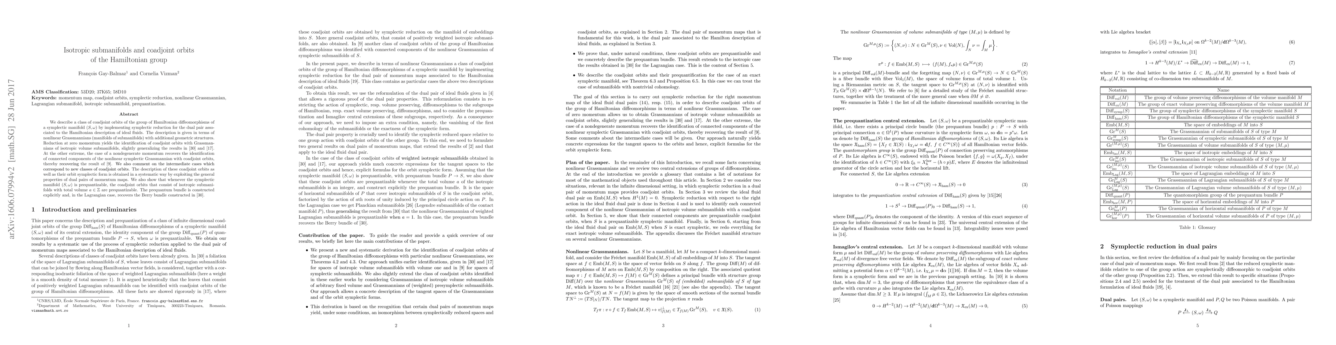 This paper explores coadjoint orbits of the Hamiltonian group through symplectic reduction, identifying them with Grassmannians of isotropic submanifolds. It systematically describes these orbits using dual pairs of momentum maps and highlights new classes of coadjoint orbits, especially when the symplectic manifold is prequantizable.