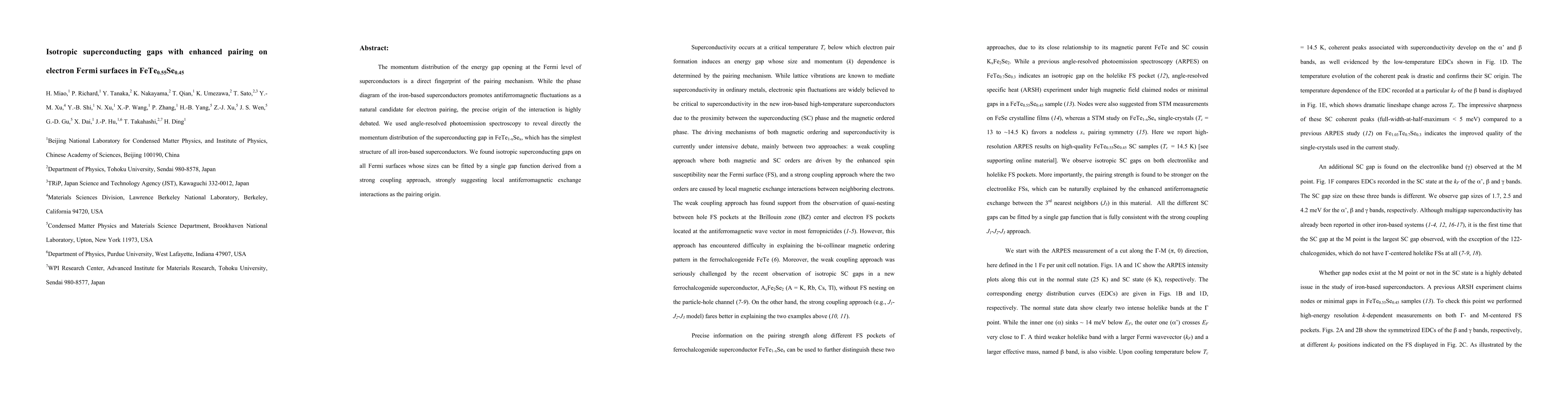 The study utilizes angle-resolved photoemission spectroscopy to reveal isotropic superconducting gaps in FeTe0.55Se0.45, suggesting local antiferromagnetic exchange interactions as the pairing mechanism in iron-based superconductors.