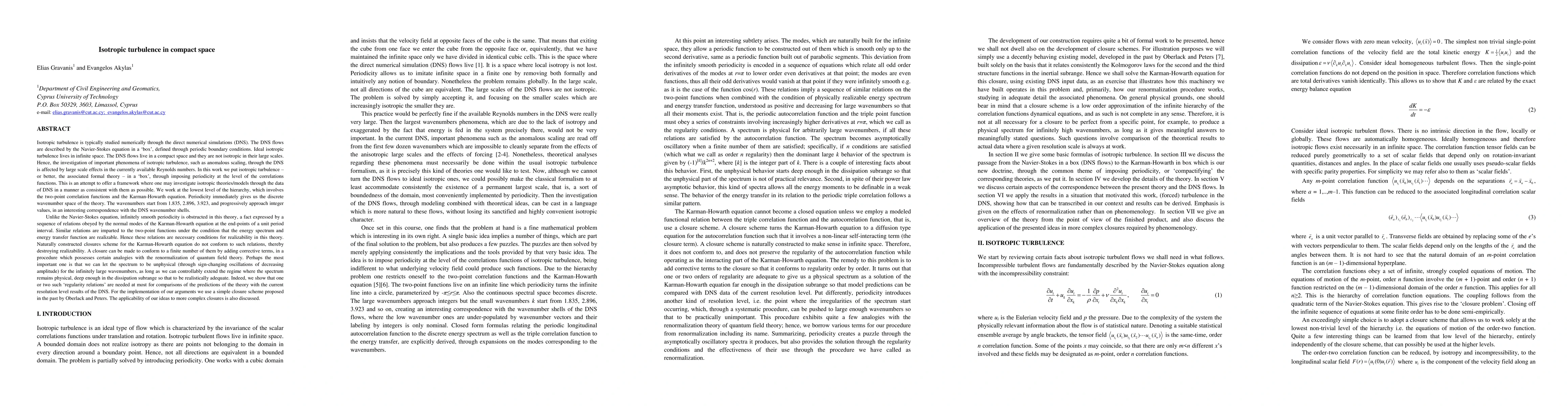 Isotropic turbulence is typically studied numerically through the direct numerical simulations (DNS). The DNS flows are described by the Navier-Stokes equation in a 'box', defined through periodic boundary conditions. The DNS flows live in a compact space and they are not isotropic in their large scales. The investigation of important phenomena of isotropic turbulence, such as anomalous scaling, through the DNS is affected by large scale effects. In this work we put isotropic turbulence - or better, the associated formal theory - in a 'box', through imposing periodicity at the level of the correlations functions. We offer a framework where one may investigate isotropic theories/models through the data of DNS in a formally consistent manner. We work at the level of the Karman-Howarth equation. Unlike the Navier-Stokes equation, infinitely smooth periodicity is obstructed in this theory, a fact expressed by a sequence of relations obeyed by the normal modes of the Karman-Howarth equation. Similar relations are imparted to the two-point functions under the condition that the energy spectrum and energy transfer function are realizable. Naturally constructed closures scheme for the Karman-Howarth equation do not conform to such relations, thereby destroying realizability. A closure can be made to conform to a finite number of them by adding corrective terms, in a procedure which possesses certain analogies with the renormalization of quantum field theory. The spectrum becomes unphysical (through sign-changing oscillations) for infinitely large wavenumbers, but we can controllably extend the regime where the spectrum remains physical deep enough in the dissipation range so that to be realistically adequate. We show that one or two such 'regularity relations' are needed at most for comparisons of the predictions of the theory with the current resolution level results of the DNS.