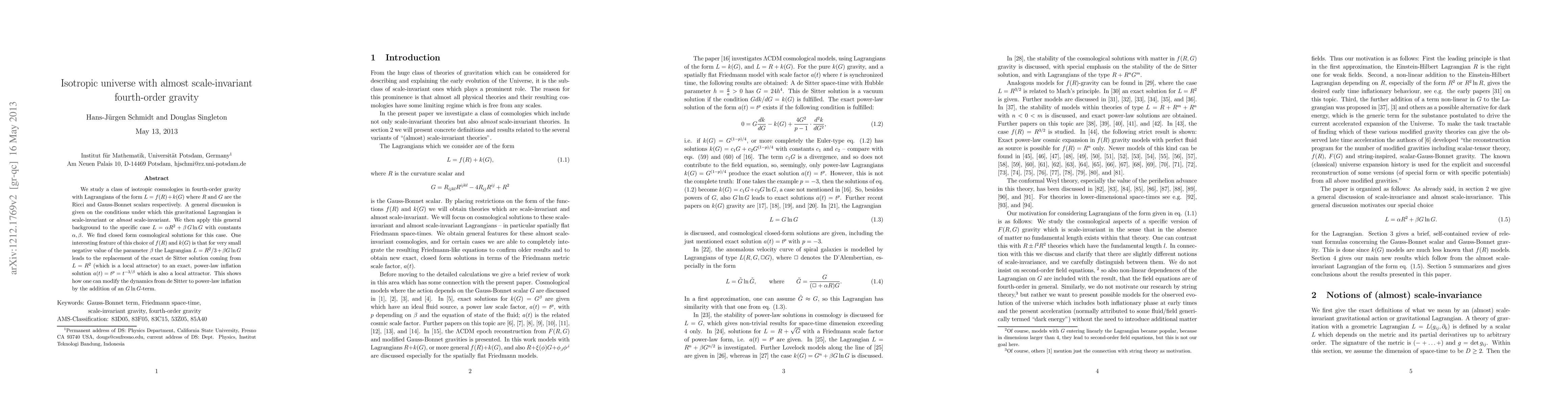 This paper explores isotropic vacuum cosmologies in fourth-order gravity with scale-invariant Lagrangians, finding closed-form solutions for a flat Friedmann space-time. It highlights how a small negative parameter in the Lagrangian can shift dynamics from de Sitter to power-law inflation, demonstrating the impact of the G ln G term.