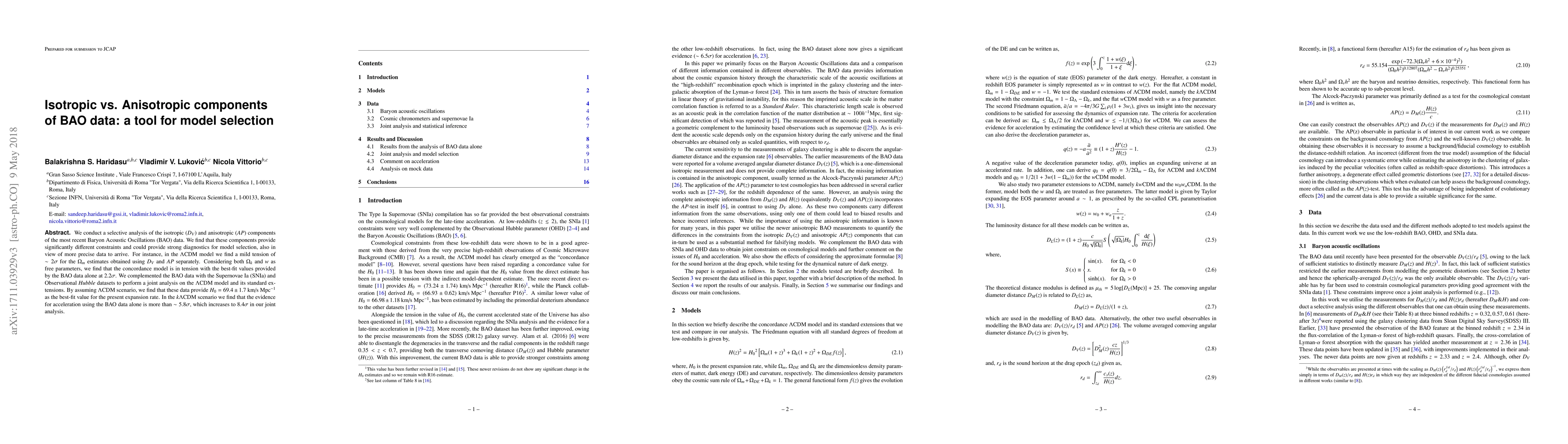 This study examines Baryon Acoustic Oscillations data for model selection, finding tension between isotropic and anisotropic components in the $ heta$CDM model, and evidence for acceleration with BAO data alone.