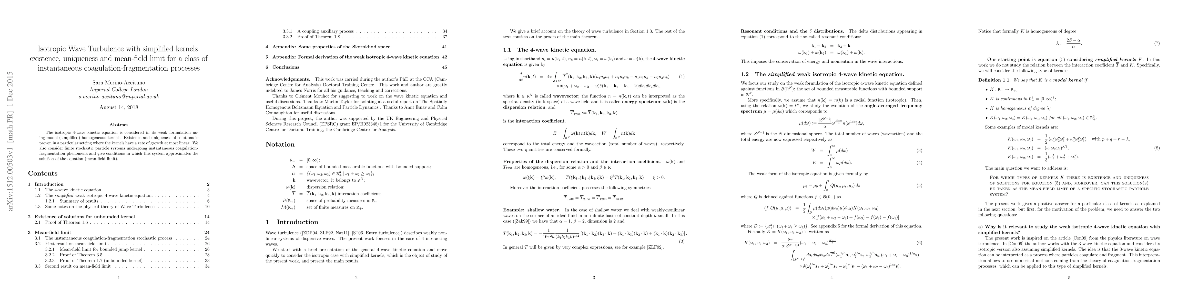 The paper investigates the existence and uniqueness of solutions to an isotropic 4-wave kinetic equation modeling instantaneous coagulation-fragmentation processes with simplified kernels. It establishes conditions for the mean-field limit of a related stochastic particle system.