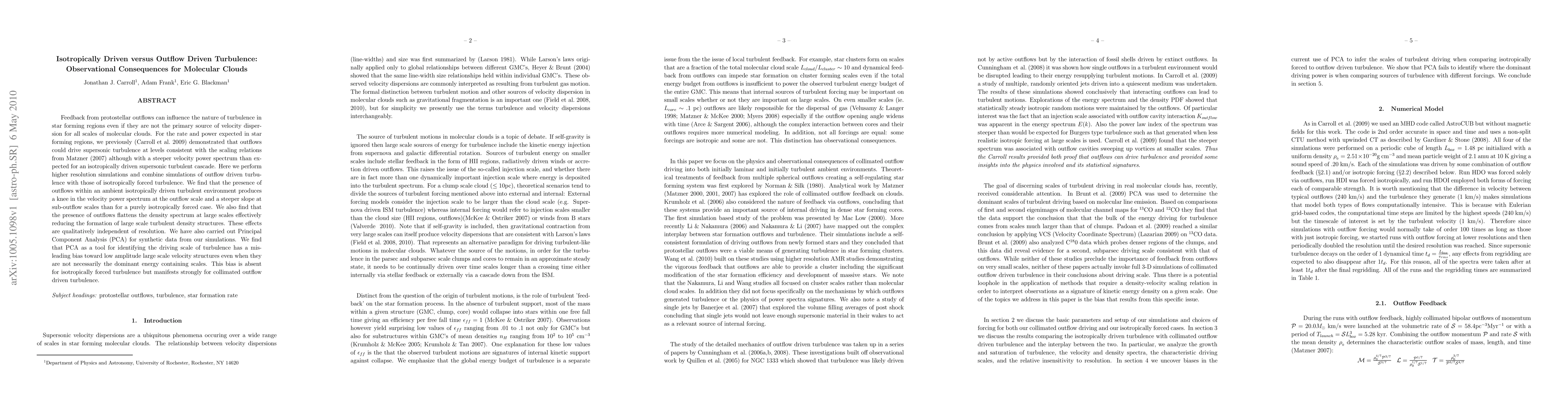 This paper compares turbulence driven by protostellar outflows versus isotropic turbulence in molecular clouds, finding that outflow-driven turbulence creates a knee in the velocity power spectrum and flattens the density spectrum at large scales. PCA analysis reveals a bias towards identifying large-scale structures as the dominant turbulence driver in outflow scenarios.