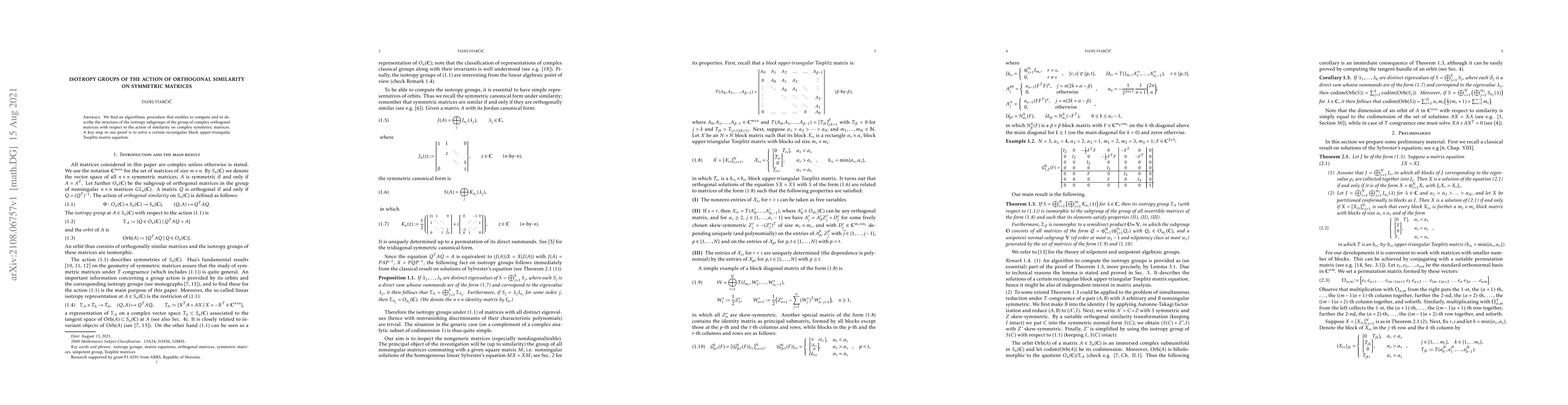 Summary: This paper presents an algorithmic method to compute and describe the isotropy subgroups of the complex orthogonal group acting on symmetric matrices, with a key step involving solving a rectangular block upper-triangular Toeplitz matrix equation.