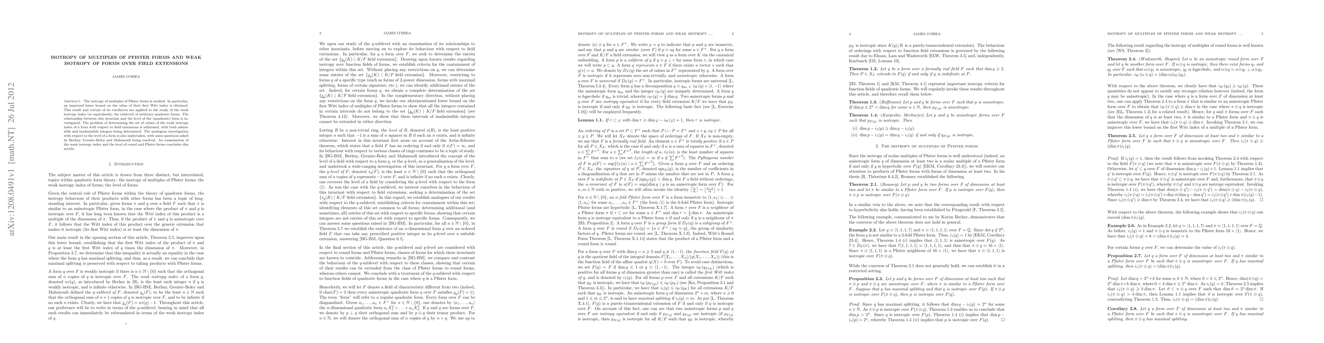 The isotropy of multiples of Pfister forms is studied. In particular, an improved lower bound on the value of their first Witt index is obtained. This result and certain of its corollaries are applied to the study of the weak isotropy index (or equivalently, the sublevel) of arbitrary quadratic forms. The relationship between this invariant and the level of the (quadratic) form is investigated. The problem of determining the set of values of the weak isotropy index of a form with respect to field extensions is addressed, with both admissible and inadmissible integers being determined. The analogous investigation with respect to the level of a form is also undertaken, with some questions asked by Berhuy, Grenier-Boley and Mahmoudi being resolved. An examination of the weak isotropy index and the level of round and Pfister forms concludes this article.