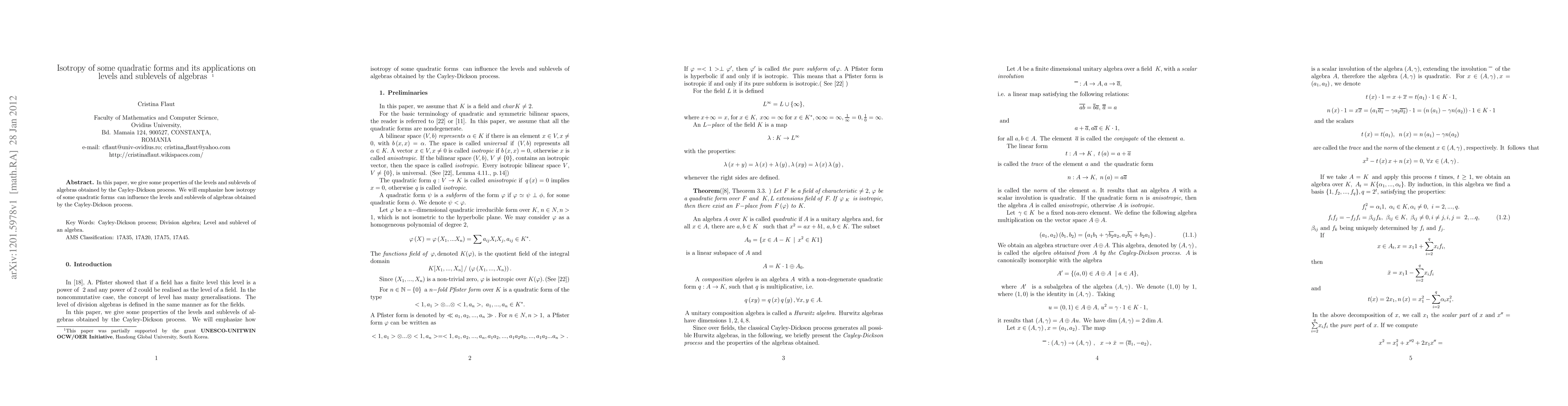 Summary: This paper explores properties of levels and sublevels in algebras derived from the Cayley-Dickson process, highlighting the influence of isotropy in certain quadratic forms on these algebraic structures.