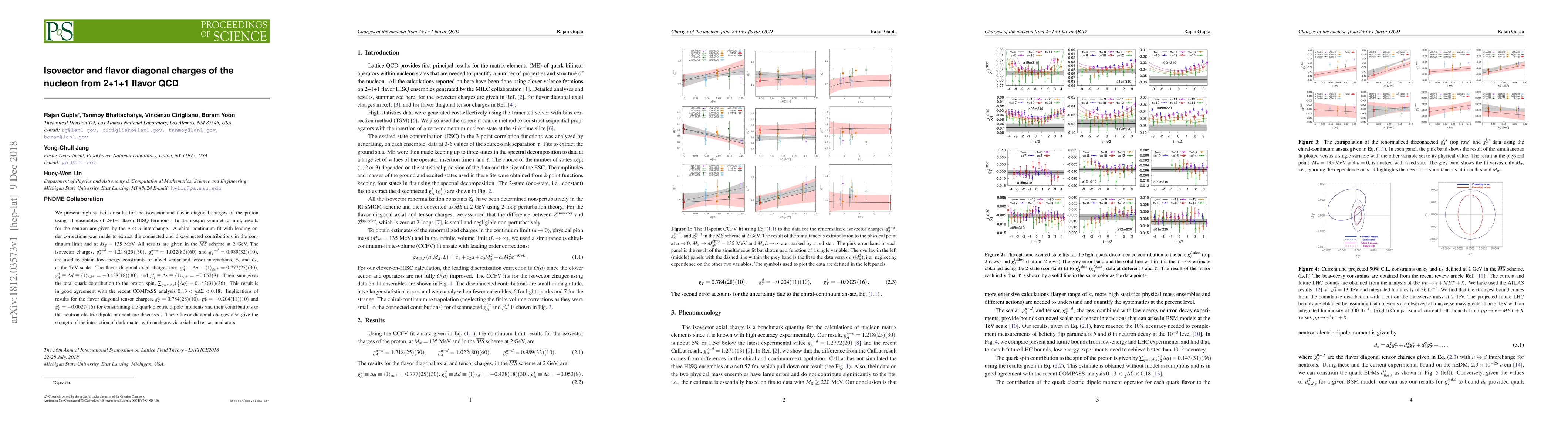 This paper reports high-precision results for isovector and flavor diagonal charges of the nucleon from lattice QCD simulations using 2+1+1 flavor HISQ fermions. The findings provide constraints on novel scalar and tensor interactions at the TeV scale and contribute to understanding the proton spin's quark component and the implications for dark matter interactions with nucleons.