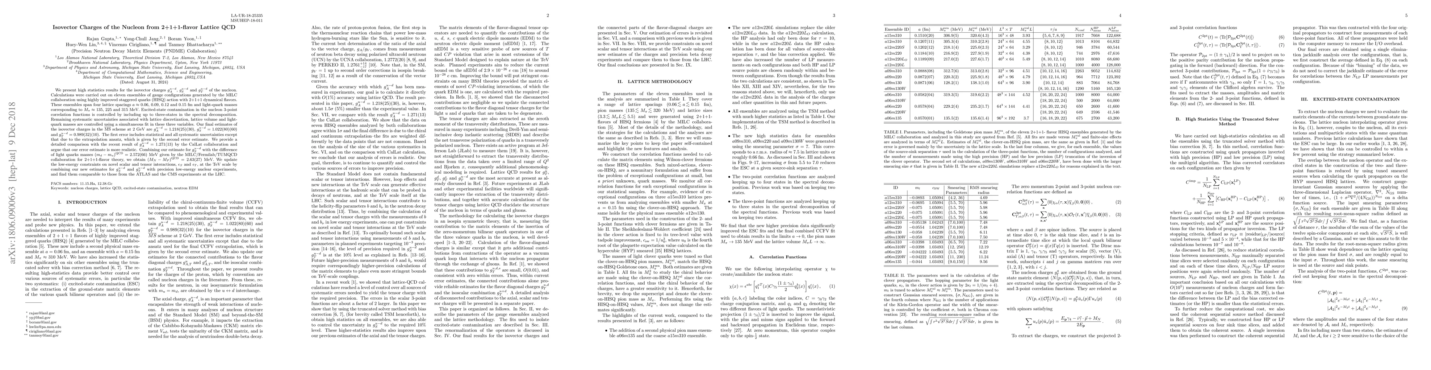 We present high statistics results for the isovector charges $g^{u-d}_A$, $g^{u-d}_S$ and $g^{u-d}_T$ of the nucleon. Calculations were carried out on eleven ensembles of gauge configurations generated by the MILC collaboration using highly improved staggered quarks (HISQ) action with 2+1+1 dynamical flavors. These ensembles span four lattice spacings $a \approx$ 0.06, 0.09, 0.12 and 0.15 fm and light-quark masses corresponding to $M_\pi \approx$ 135, 225 and 315 MeV. Excited-state contamination in the nucleon 3-point correlation functions is controlled by including up to three-states in the spectral decomposition. Remaining systematic uncertainties associated with lattice discretization, lattice volume and light-quark masses are controlled using a simultaneous fit in these three variables. Our final estimates of the isovector charges in the $\overline{\text{MS}}$ scheme at 2 GeV are $g_A^{u-d} = 1.218(25)(30)$, $g_S^{u-d} = 1.022(80)(60) $ and $g_T^{u-d} = 0.989(32)(10)$. The first error includes statistical and all systematic uncertainties except that due to the extrapolation ansatz, which is given by the second error estimate. We provide a detailed comparison with the recent result of $g_A^{u-d} = 1.271(13)$ by the CalLat collaboration and argue that our error estimate is more realistic. Combining our estimate for $g_S^{u-d}$ with the difference of light quarks masses $(m_d-m_u)^{\rm QCD}=2.572(66)$ MeV given by the MILC/Fermilab/TUMQCD collaboration for 2+1+1-flavor theory, we obtain $(M_N-M_P)^{\rm QCD} = 2.63(27)$ MeV. We update the low-energy constraints on novel scalar and tensor interactions, $\epsilon_{S}$ and $\epsilon_{T}$, at the TeV scale by combining our new estimates for $g^{u-d}_S$ and $g^{u-d}_T$ with precision low-energy nuclear experiments, and find them comparable to those from the ATLAS and the CMS experiments at the LHC.