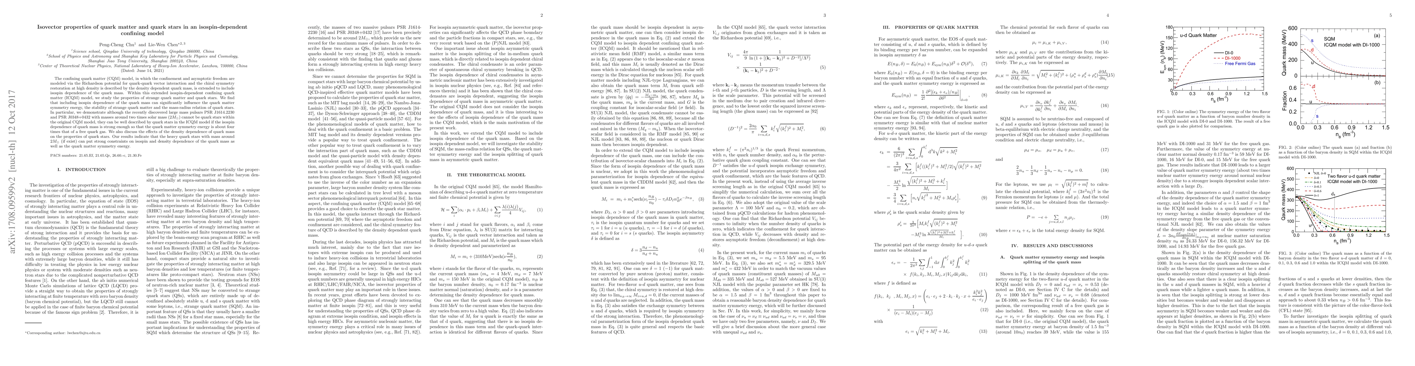 The confining quark matter (CQM) model, in which the confinement and asymptotic freedom are modeled via the Richardson potential for quark-quark vector interaction and the chiral symmetry restoration at high density is described by the density dependent quark mass, is extended to include isospin dependence of the quark mass. Within this extended isospin-dependent confining quark matter (ICQM) model, we study the properties of strange quark matter and quark stars. We find that including isospin dependence of the quark mass can significantly influence the quark matter symmetry energy, the stability of strange quark matter and the mass-radius relation of quark stars. In particular, we demonstrate although the recently discovered large mass pulsars PSR J1614.2230 and PSR J0348+0432 with masses around two times solar mass ($2M_{\odot}$) cannot be quark stars within the original CQM model, they can be well described by quark stars in the ICQM model if the isospin dependence of quark mass is strong enough so that the quark matter symmetry energy is about four times that of a free quark gas. We also discuss the effects of the density dependence of quark mass on the properties of quark stars. Our results indicate that the heavy quark stars with mass around $2M_{\odot}$ (if exist) can put strong constraints on isospin and density dependence of the quark mass as well as the quark matter symmetry energy.