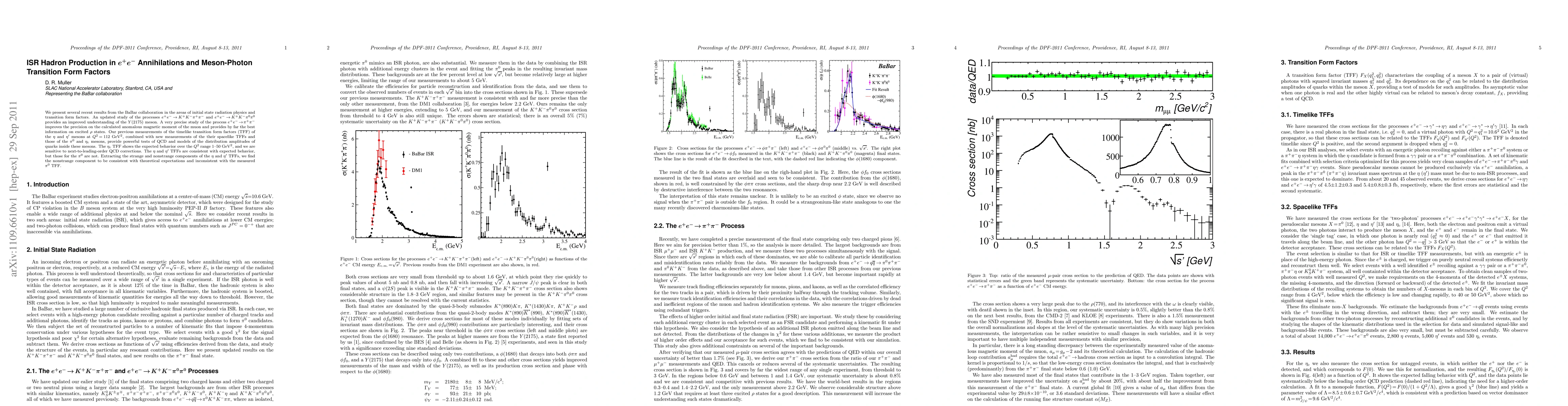 The BaBar collaboration reports refined results on initial state radiation and transition form factors in e+e- annihilations, enhancing understanding of the Y(2175) meson and providing precise data on excited rho states and the anomalous magnetic moment of the muon. New measurements of timelike and spacelike transition form factors for eta, eta', pi0, and eta_c mesons offer stringent tests of QCD and quark distribution models.