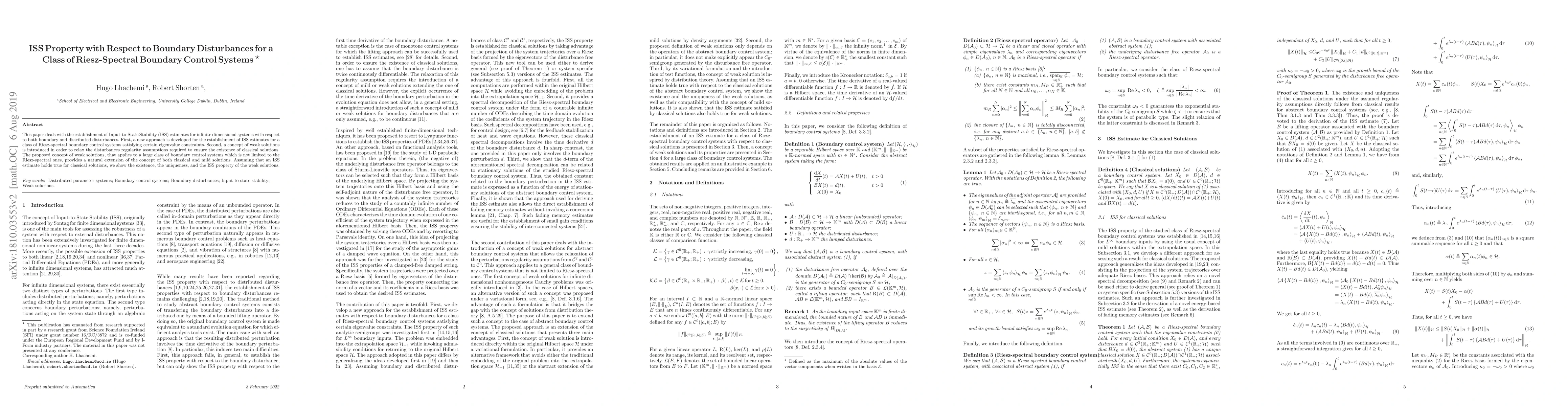 This paper develops a new approach to establishing Input-to-State Stability (ISS) estimates for infinite dimensional systems with boundary disturbances, allowing for relaxation of regularity assumptions on the disturbances.