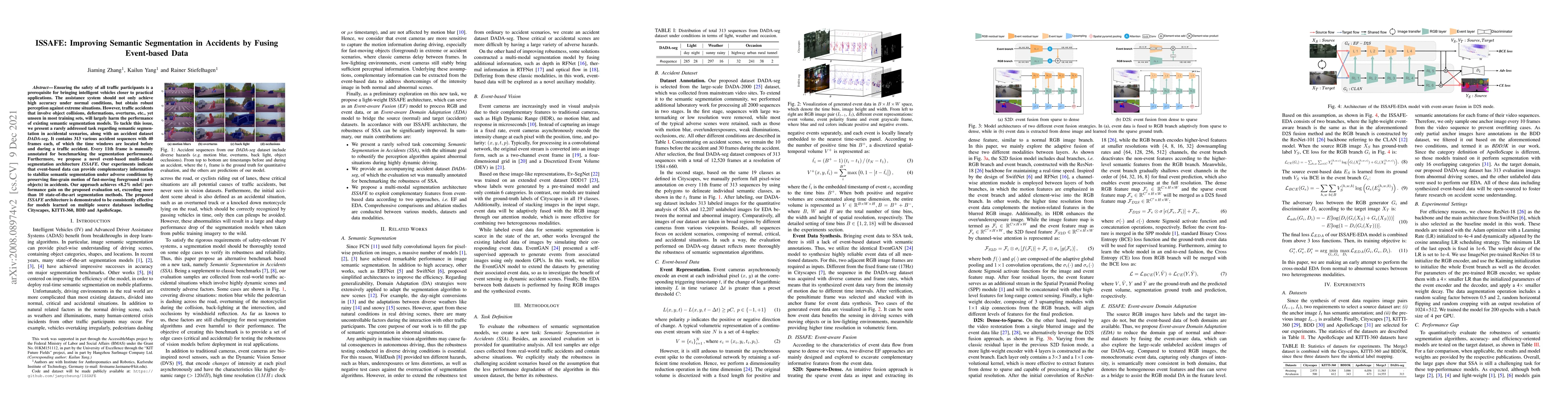 Ensuring the safety of all traffic participants is a prerequisite for bringing intelligent vehicles closer to practical applications. The assistance system should not only achieve high accuracy under normal conditions, but obtain robust perception against extreme situations. However, traffic accidents that involve object collisions, deformations, overturns, etc., yet unseen in most training sets, will largely harm the performance of existing semantic segmentation models. To tackle this issue, we present a rarely addressed task regarding semantic segmentation in accidental scenarios, along with an accident dataset DADA-seg. It contains 313 various accident sequences with 40 frames each, of which the time windows are located before and during a traffic accident. Every 11th frame is manually annotated for benchmarking the segmentation performance. Furthermore, we propose a novel event-based multi-modal segmentation architecture ISSAFE. Our experiments indicate that event-based data can provide complementary information to stabilize semantic segmentation under adverse conditions by preserving fine-grain motion of fast-moving foreground (crash objects) in accidents. Our approach achieves +8.2% mIoU performance gain on the proposed evaluation set, exceeding more than 10 state-of-the-art segmentation methods. The proposed ISSAFE architecture is demonstrated to be consistently effective for models learned on multiple source databases including Cityscapes, KITTI-360, BDD and ApolloScape.