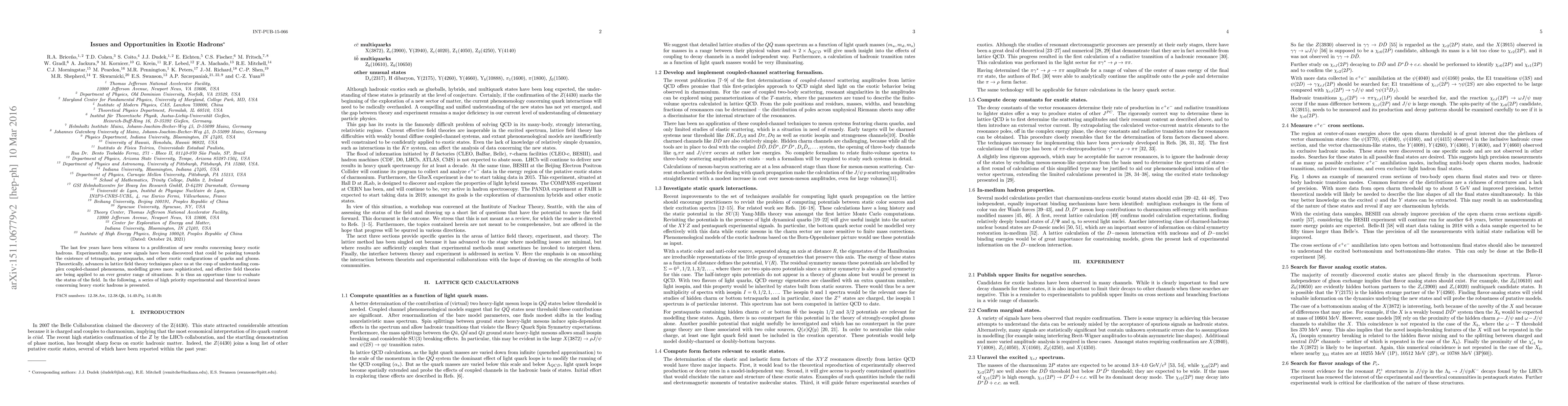This paper reviews recent experimental discoveries of potential tetraquarks and pentaquarks, alongside advancements in theoretical techniques like lattice field theory, and discusses high-priority issues and opportunities for further research in the field of exotic hadrons.