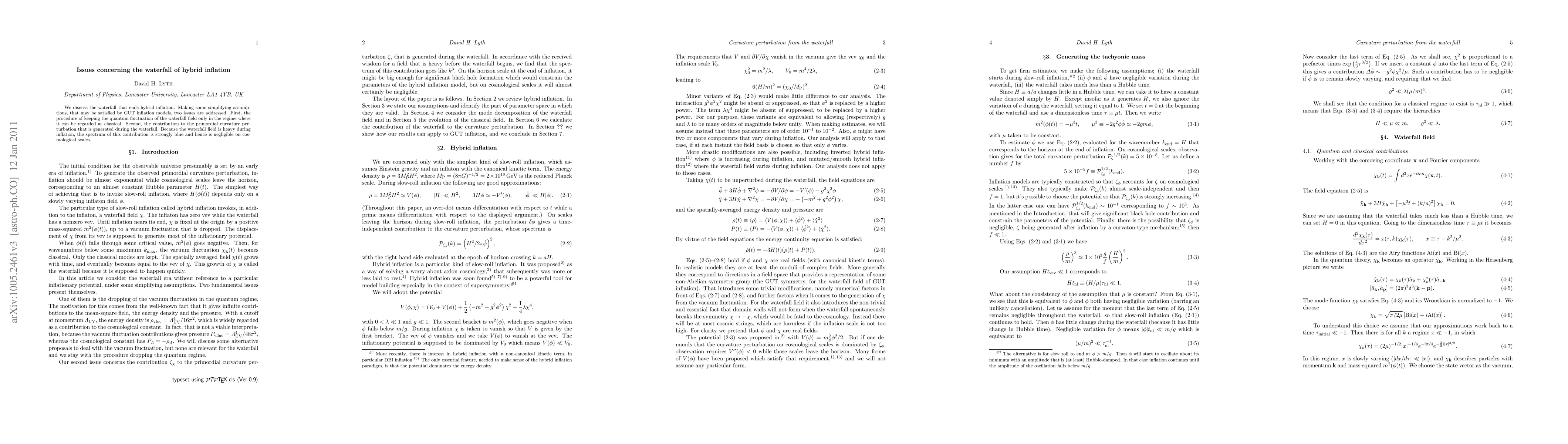 We discuss the waterfall that ends hybrid inflation. Making some simplifying assumptions, that may be satisfied by GUT inflation models, two issues are addressed. First, the procedure of keeping the quantum fluctuation of the waterfall field only in the regime where it can be regarded as classical. Second, the contribution to the primordial curvature perturbation that is generated during the waterfall. Because the waterfall field is heavy during inflation, the spectrum of this contribution is strongly blue and hence is negligible on cosmological scales.