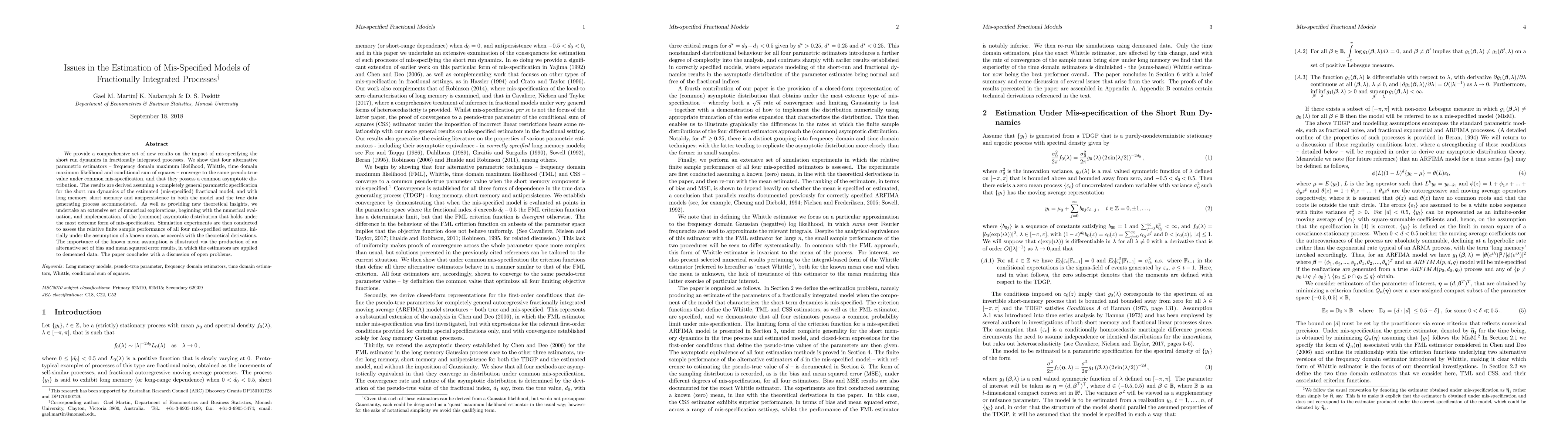 We provide a comprehensive set of new results on the impact of mis-specifying the short run dynamics in fractionally integrated processes. We show that four alternative parametric estimators - frequency domain maximum likelihood, Whittle, time domain maximum likelihood and conditional sum of squares - converge to the same pseudo-true value under common mis-specification, and that they possess a common asymptotic distribution. The results are derived assuming a completely general parametric specification for the short run dynamics of the estimated (mis-specified) fractional model, and with long memory, short memory and antipersistence in both the model and the true data generating process accommodated. As well as providing new theoretical insights, we undertake an extensive set of numerical explorations, beginning with the numerical evaluation, and implementation, of the (common) asymptotic distribution that holds under the most extreme form of mis-specification. Simulation experiments are then conducted to assess the relative finite sample performance of all four mis-specified estimators, initially under the assumption of a known mean, as accords with the theoretical derivations. The importance of the known mean assumption is illustrated via the production of an alternative set of bias and mean squared error results, in which the estimators are applied to demeaned data. The paper concludes with a discussion of open problems.