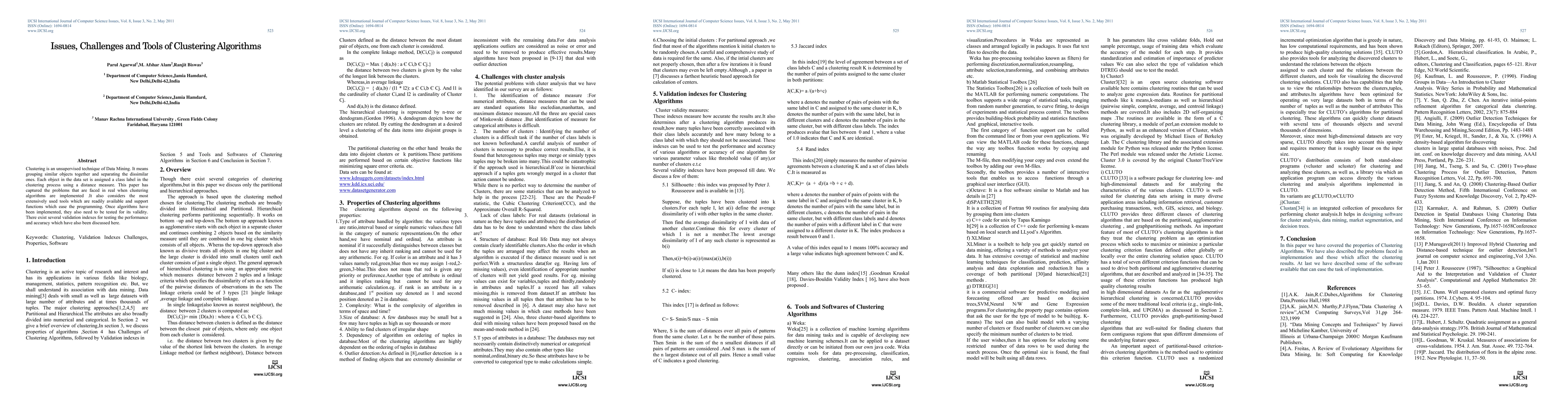 This paper explores common issues and challenges faced when implementing clustering algorithms in data mining, along with tools and validation indexes for testing performance and accuracy.