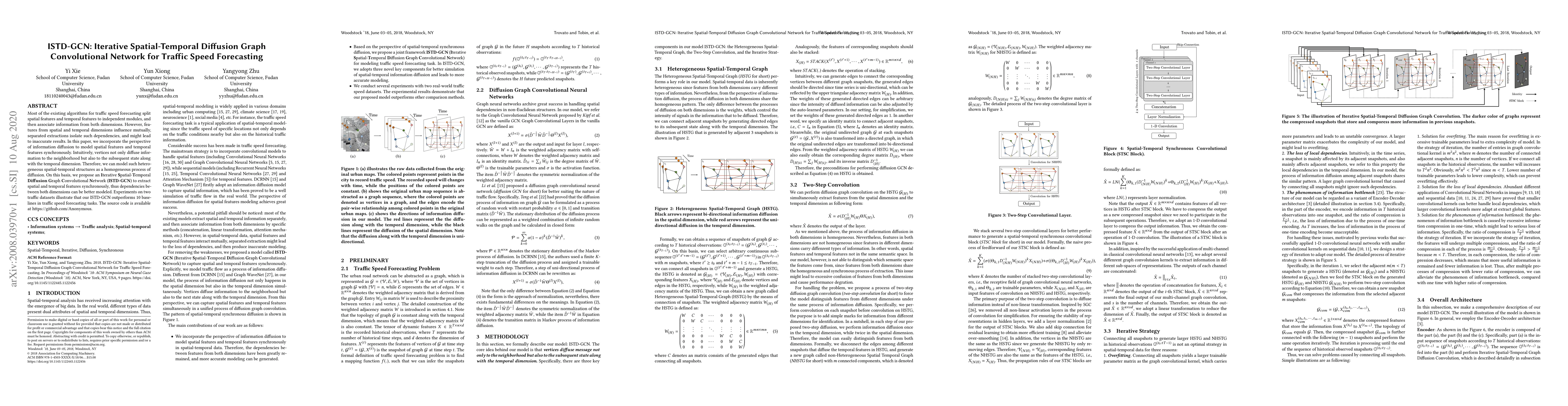 This paper proposes an Iterative Spatial-Temporal Diffusion Graph Convolutional Network (ISTD-GCN) to synchronously model spatial and temporal features for traffic speed forecasting, addressing the issue of isolated feature extractions that ignore mutual dependencies. Experiments show ISTD-GCN outperforms 10 baselines on two traffic datasets.