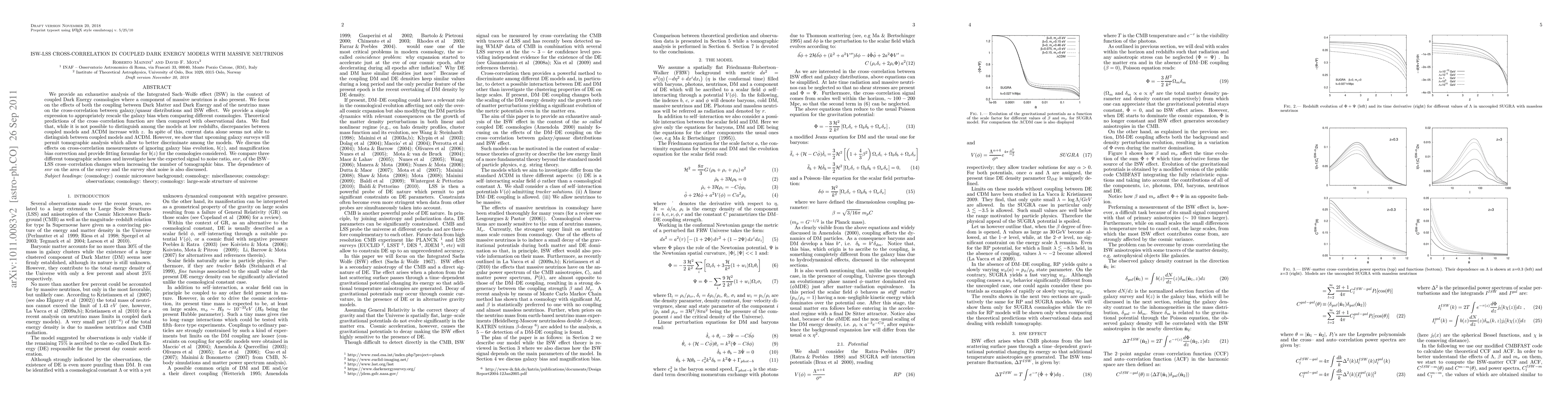 This paper analyzes the Integrated Sachs-Wolfe effect in coupled Dark Energy models with massive neutrinos, focusing on the cross-correlation between galaxy/quasar distributions and the ISW effect. It finds that while current data cannot distinguish between coupled models and ΛCDM, future galaxy surveys may allow for better discrimination. The study also provides fitting formulae for galaxy bias evolution and examines the impact of survey parameters on the signal-to-noise ratio of the ISW-LSS cross-correlation.