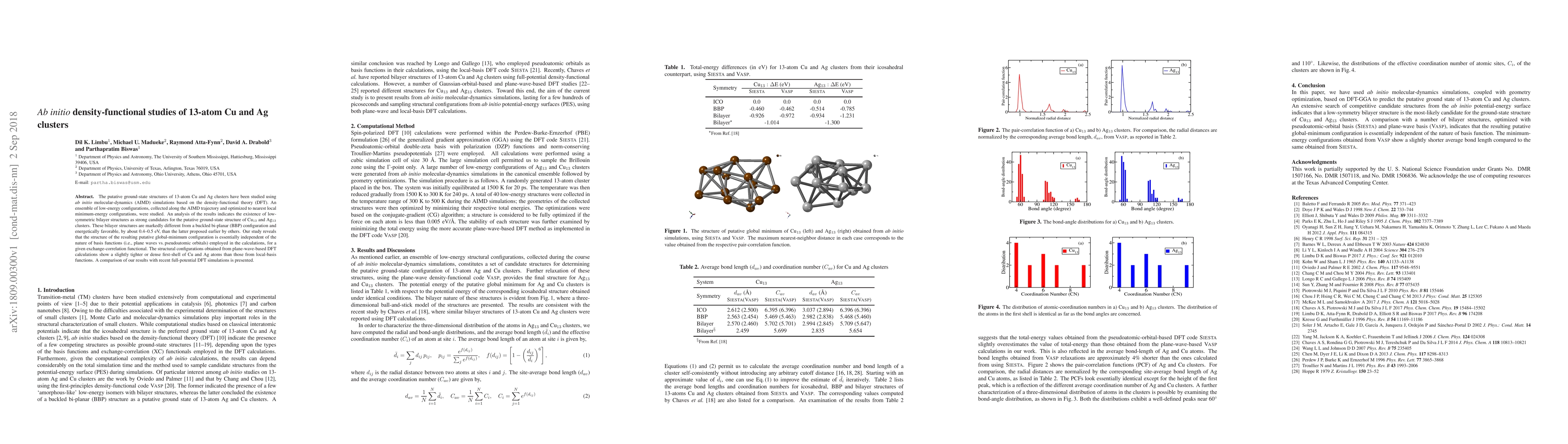 Researchers used a computational method to study the structures of 13-atom copper and silver clusters, finding that bilayer structures are energetically favorable alternatives to earlier proposed configurations.