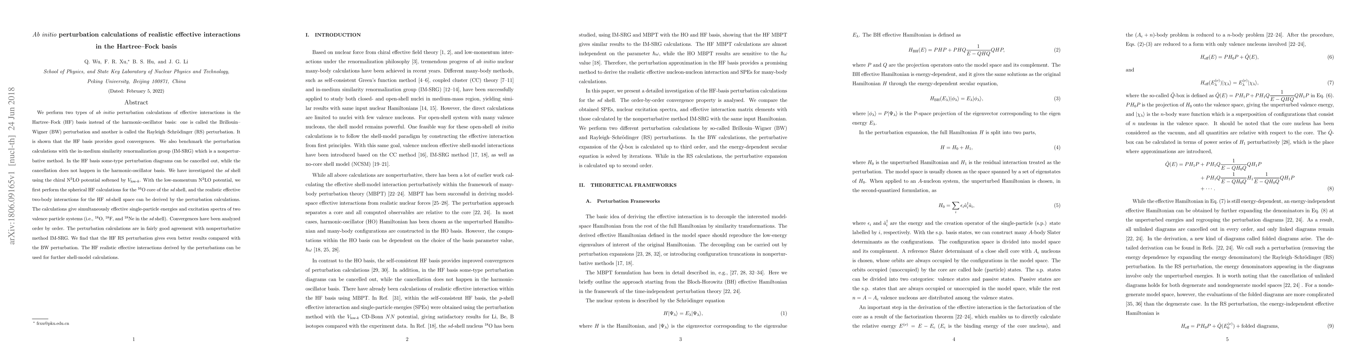 This paper conducts {\it ab initio} perturbation calculations of effective interactions in the Hartree-Fock (HF) basis, demonstrating better convergence and cancellation of perturbation diagrams compared to the harmonic-oscillator basis. The HF basis results are benchmarked against the IM-SRG method, showing good agreement and suggesting the HF Rayleigh-Schrödinger perturbation yields superior results.