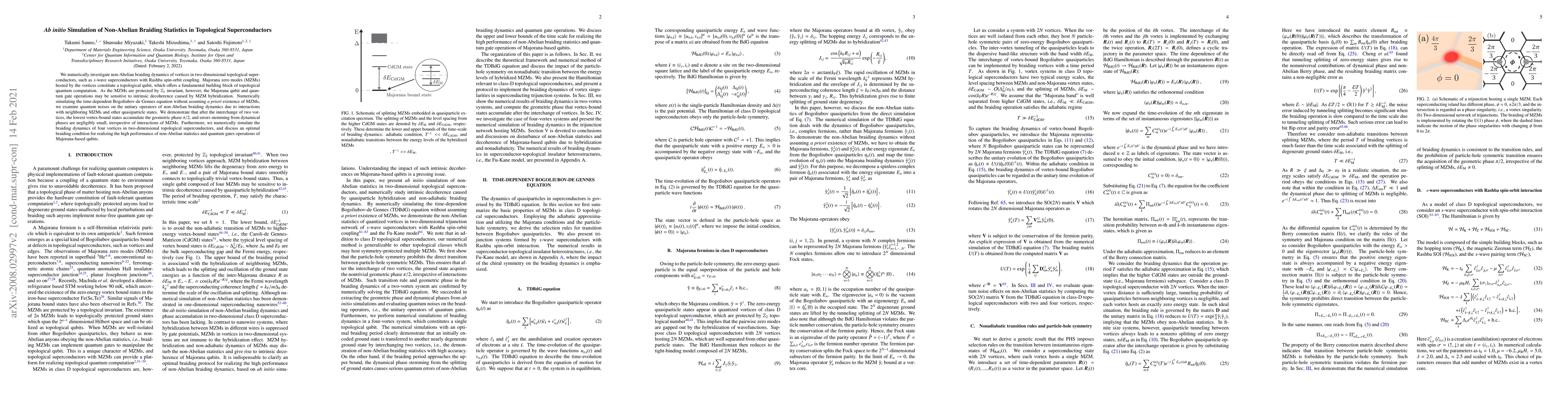 This paper uses ${\it Ab \ Initio}$ simulation to study non-Abelian braiding dynamics of vortices in 2D topological superconductors, demonstrating that vortex-bound Majorana zero modes exhibit a geometric phase of $\pi/2$ after interchanging two vortices, with minimal error from quasiparticle interactions, and identifies optimal conditions for high-performance non-Abelian statistics and quantum gate operations.