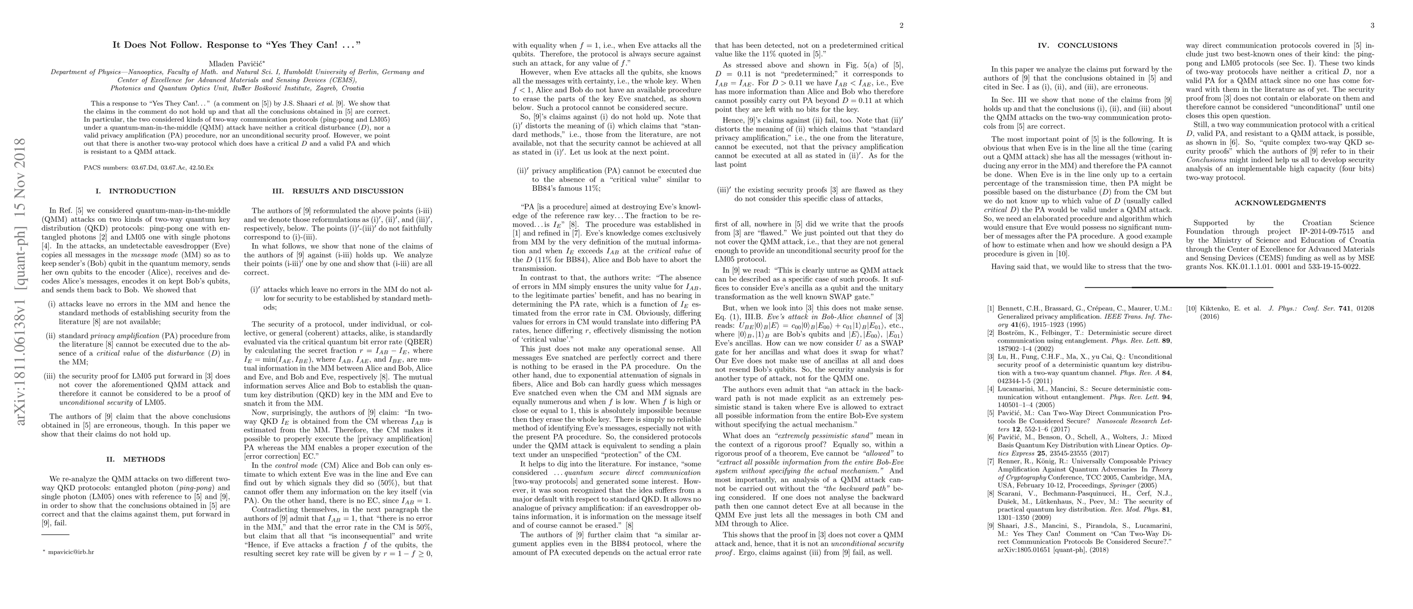 This a response to "Yes They Can! ..." (a comment on [5]) by J.S. Shaari et al. [9]. We show that the claims in the comment do not hold up and that all the conclusions obtained in [5] are correct. In particular, the two considered kinds of two-way communication protocols (ping-pong and LM05) under a quantum-man-in-the-middle (QMM) attack have neither a critical disturbance (D), nor a valid privacy amplification (PA) procedure, nor an unconditional security proof. However, we point out that there is another two-way protocol which does have a critical D and a valid PA and which is resistant to a QMM attack.