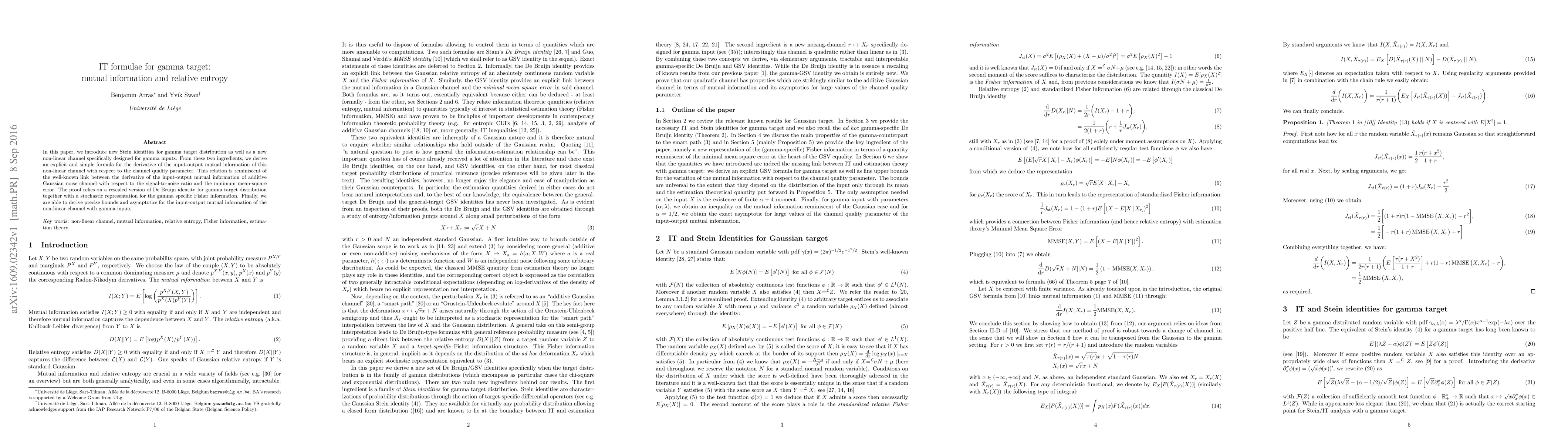 Researchers develop new formulas for calculating mutual information with gamma inputs in non-linear channels, providing a simpler way to analyze channel performance and deriving bounds on input-output mutual information.