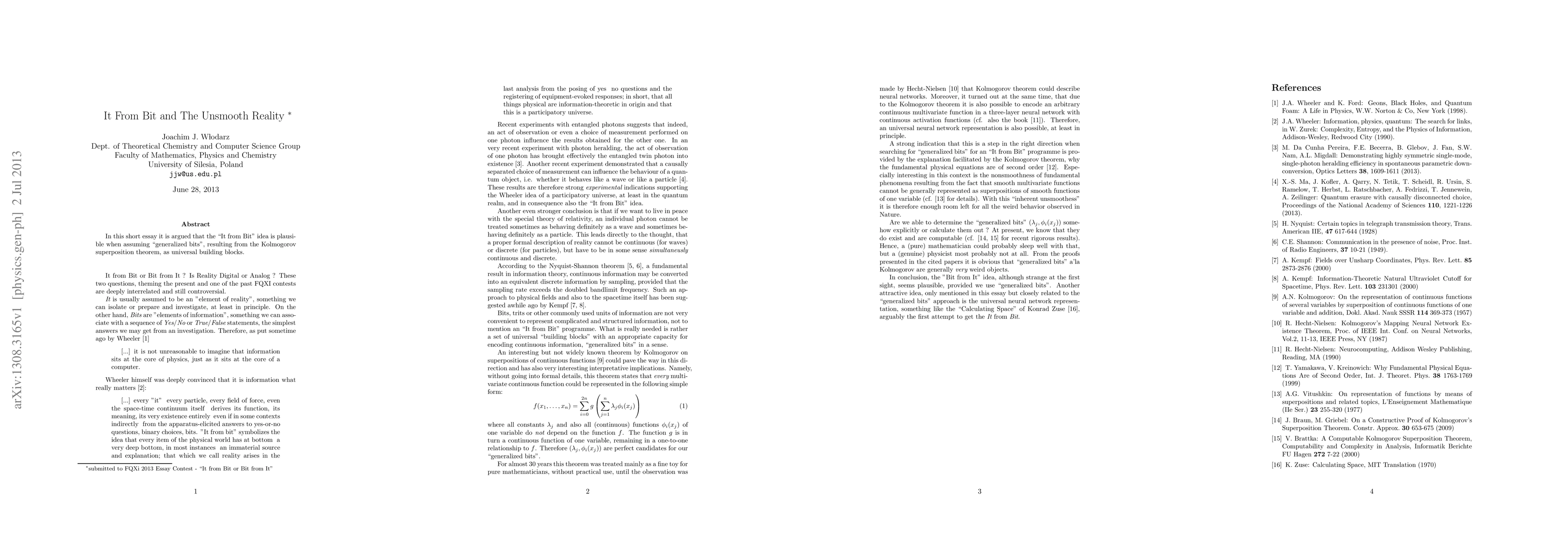 In this short essay it is argued that the "It from Bit" idea is plausible when assuming "generalized bits", resulting from the Kolmogorov superposition theorem, as universal building blocks.