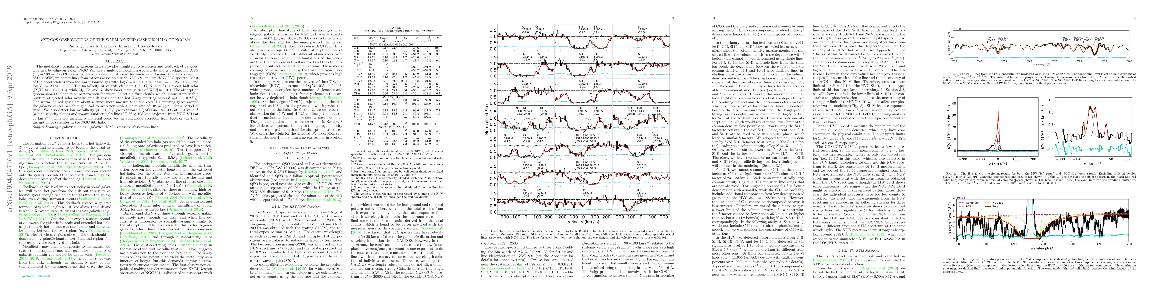 This study uses {\it HST}/COS observations to analyze the warm ionized gaseous halo of NGC 891, revealing a multi-component structure with metallicities about half solar for volatile elements and lower for Mg, Fe, and Ni. The warm ionized gas is significantly more massive than the cold \ion{H}{1} gas, suggesting potential accretion rates.