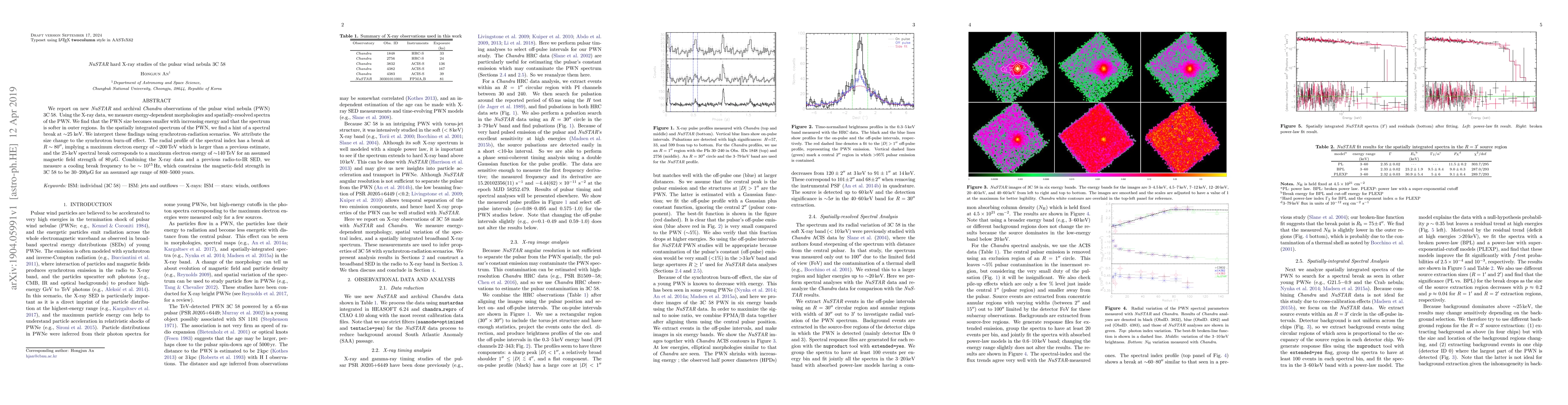 This study uses NuSTAR and Chandra observations to analyze the pulsar wind nebula 3C 58, revealing a smaller nebula size at higher energies and a softer spectrum in outer regions. The findings suggest a synchrotron-radiation mechanism, with a spectral break at around 25 keV indicating a maximum electron energy of approximately 140 TeV.