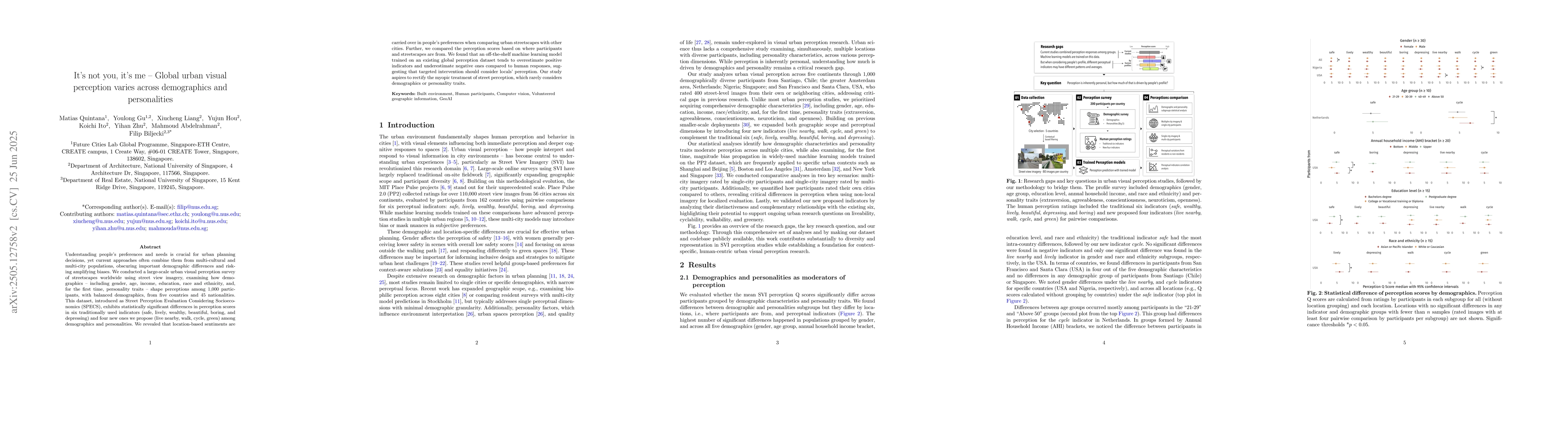 A global survey of 1,000 participants from 45 nationalities found significant differences in urban perception based on demographics and personality traits, while also highlighting the limitations of current approaches to urban planning that neglect these factors.