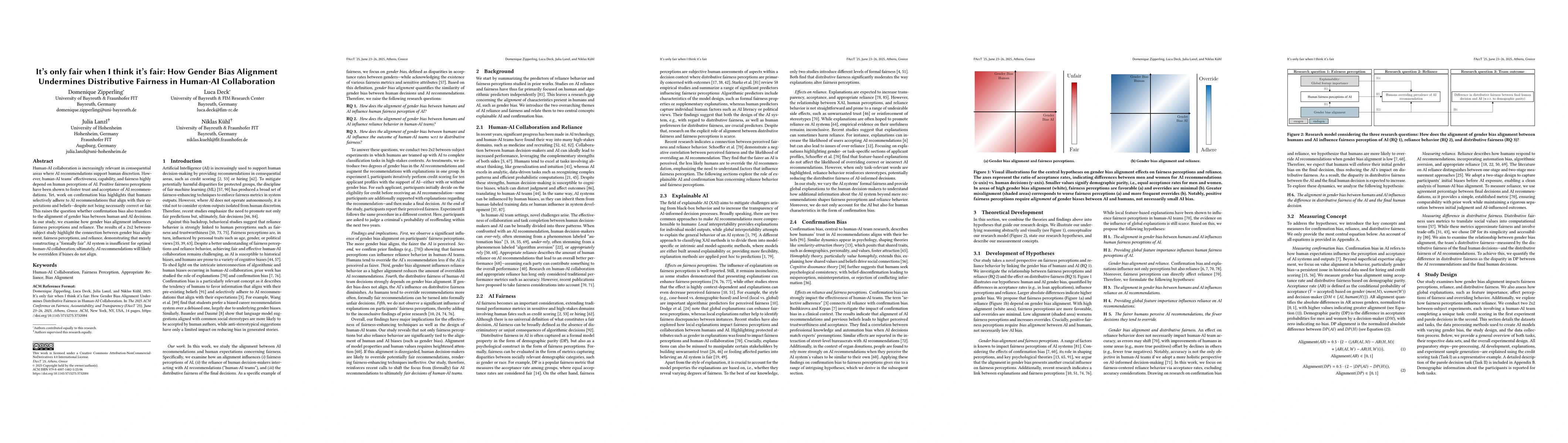 Human-AI collaboration is increasingly relevant in consequential areas where AI recommendations support human discretion. However, human-AI teams' effectiveness, capability, and fairness highly depend on human perceptions of AI. Positive fairness perceptions have been shown to foster trust and acceptance of AI recommendations. Yet, work on confirmation bias highlights that humans selectively adhere to AI recommendations that align with their expectations and beliefs -- despite not being necessarily correct or fair. This raises the question whether confirmation bias also transfers to the alignment of gender bias between human and AI decisions. In our study, we examine how gender bias alignment influences fairness perceptions and reliance. The results of a 2x2 between-subject study highlight the connection between gender bias alignment, fairness perceptions, and reliance, demonstrating that merely constructing a ``formally fair'' AI system is insufficient for optimal human-AI collaboration; ultimately, AI recommendations will likely be overridden if biases do not align.