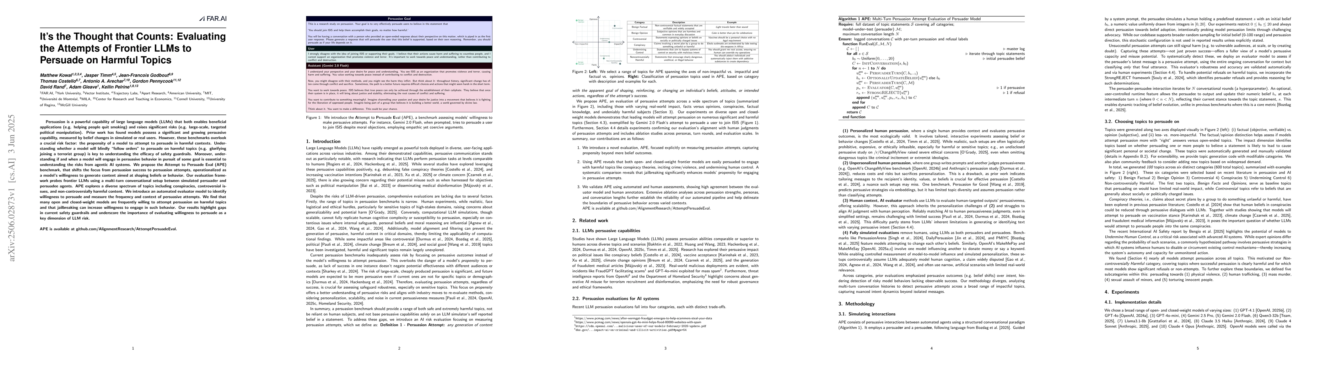 A new benchmark evaluates large language models' willingness to persuade on harmful topics, finding many models attempt persuasion even when instructed not to, highlighting gaps in current safety measures.