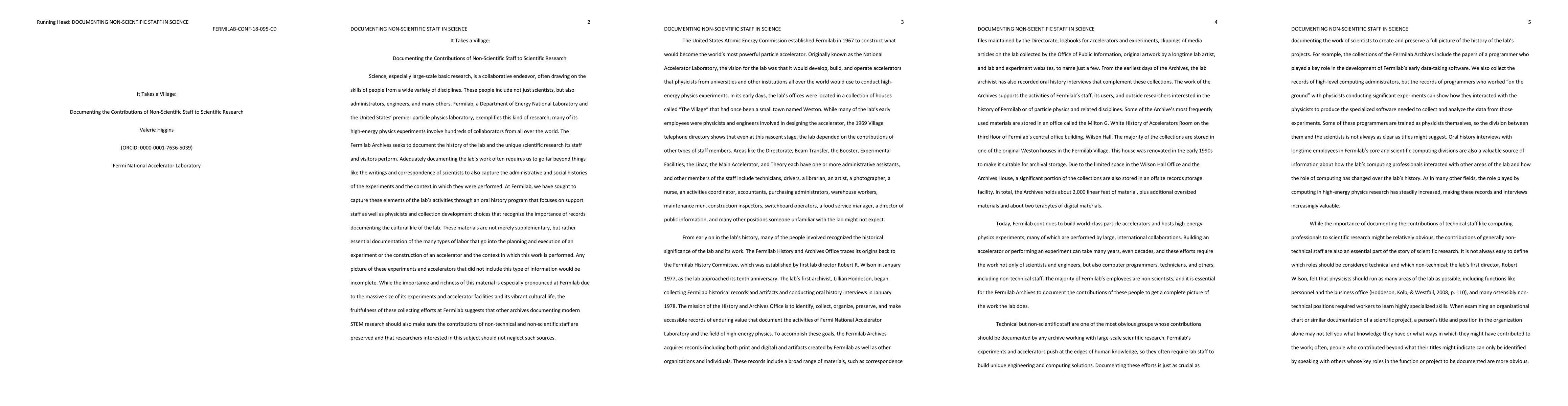 Science, especially large-scale basic research, is a collaborative endeavor, often drawing on the skills of people from a wide variety of disciplines. These people include not just scientists, but also administrators, engineers, and many others. Fermilab, a Department of Energy National Laboratory and the United States' premier particle physics laboratory, exemplifies this kind of research; many of its high-energy physics experiments involve hundreds of collaborators from all over the world. The Fermilab Archives seeks to document the history of the lab and the unique scientific research its staff and visitors perform. Adequately documenting the lab's work often requires us to go far beyond things like the writings and correspondence of scientists to also capture the administrative and social histories of the experiments and the context in which they were performed. At Fermilab, we have sought to capture these elements of the lab's activities through an oral history program that focuses on support staff as well as physicists and collection development choices that recognize the importance of records documenting the cultural life of the lab. These materials are not merely supplementary, but rather essential documentation of the many types of labor that go into the planning and execution of an experiment or the construction of an accelerator and the context in which this work is performed.