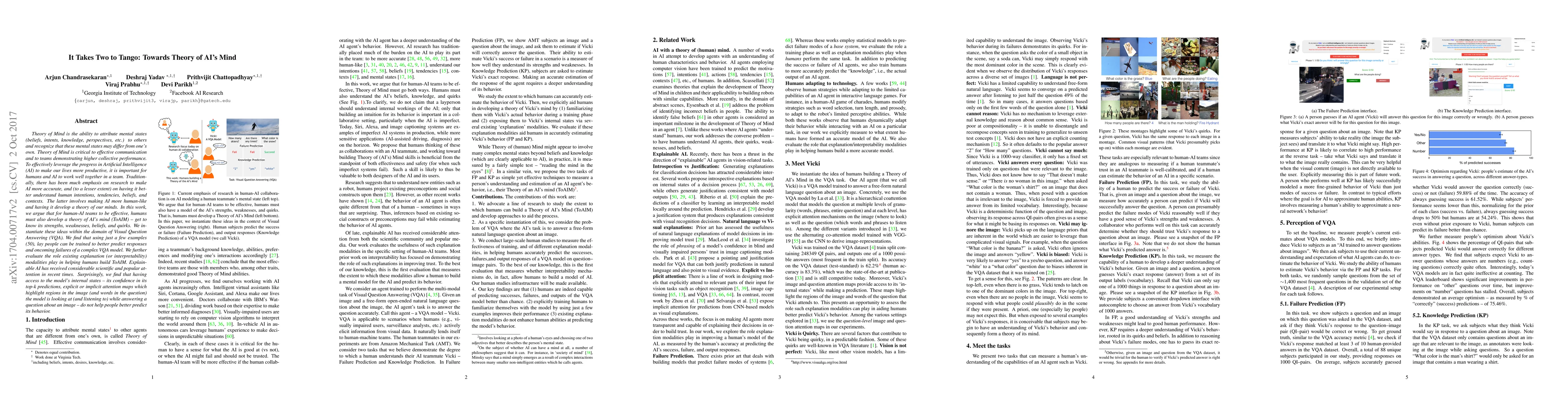 Theory of Mind is the ability to attribute mental states (beliefs, intents, knowledge, perspectives, etc.) to others and recognize that these mental states may differ from one's own. Theory of Mind is critical to effective communication and to teams demonstrating higher collective performance. To effectively leverage the progress in Artificial Intelligence (AI) to make our lives more productive, it is important for humans and AI to work well together in a team. Traditionally, there has been much emphasis on research to make AI more accurate, and (to a lesser extent) on having it better understand human intentions, tendencies, beliefs, and contexts. The latter involves making AI more human-like and having it develop a theory of our minds. In this work, we argue that for human-AI teams to be effective, humans must also develop a theory of AI's mind (ToAIM) - get to know its strengths, weaknesses, beliefs, and quirks. We instantiate these ideas within the domain of Visual Question Answering (VQA). We find that using just a few examples (50), lay people can be trained to better predict responses and oncoming failures of a complex VQA model. We further evaluate the role existing explanation (or interpretability) modalities play in helping humans build ToAIM. Explainable AI has received considerable scientific and popular attention in recent times. Surprisingly, we find that having access to the model's internal states - its confidence in its top-k predictions, explicit or implicit attention maps which highlight regions in the image (and words in the question) the model is looking at (and listening to) while answering a question about an image - do not help people better predict its behavior.
