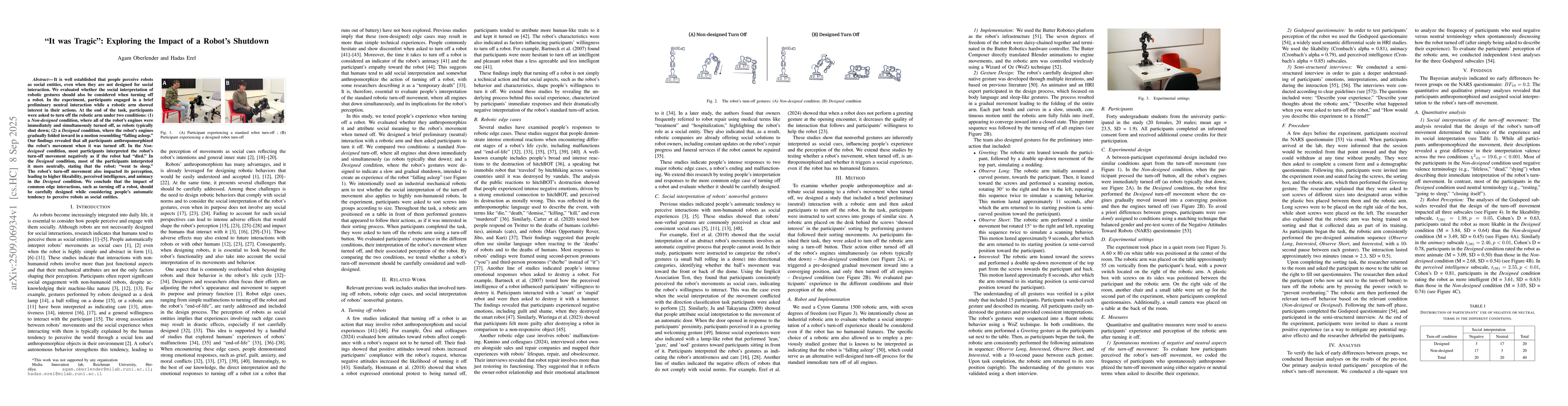 It is well established that people perceive robots as social entities, even when they are not designed for social interaction. We evaluated whether the social interpretation of robotic gestures should also be considered when turning off a robot. In the experiment, participants engaged in a brief preliminary neutral interaction while a robotic arm showed interest in their actions. At the end of the task, participants were asked to turn off the robotic arm under two conditions: (1) a Non-designed condition, where all of the robot's engines were immediately and simultaneously turned off, as robots typically shut down; (2) a Designed condition, where the robot's engines gradually folded inward in a motion resembling "falling asleep." Our findings revealed that all participants anthropomorphized the robot's movement when it was turned off. In the Non-designed condition, most participants interpreted the robot's turn-off movement negatively, as if the robot had "died." In the Designed condition, most participants interpreted it more neutrally, stating that the robot "went to sleep." The robot's turn-off movement also impacted its perception, leading to higher likeability, perceived intelligence, and animacy in the Designed condition. We conclude that the impact of common edge interactions, such as turning off a robot, should be carefully designed while considering people's automatic tendency to perceive robots as social entities.
