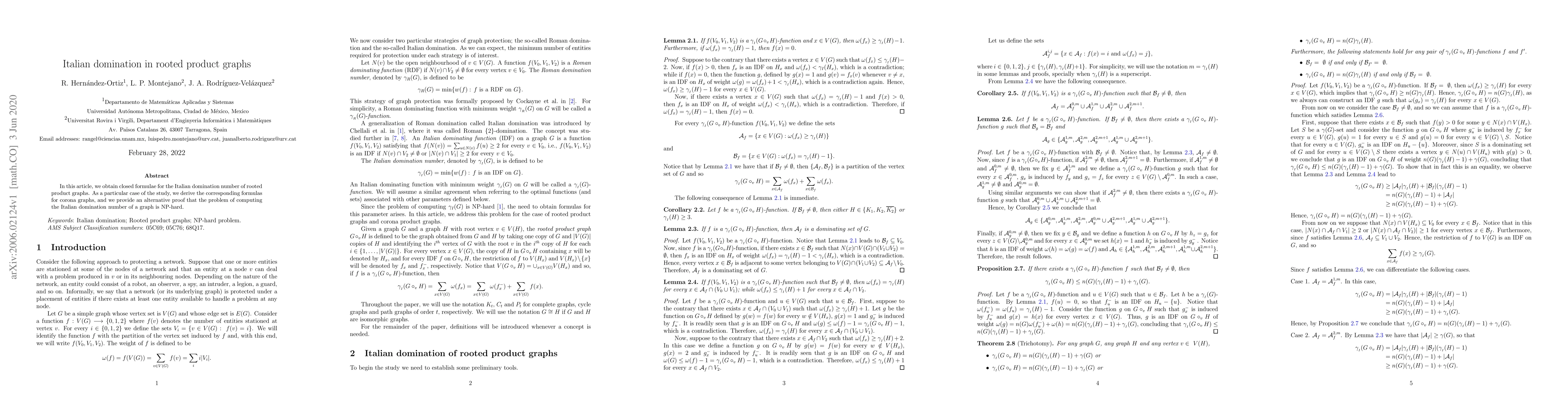 The research derives closed-formulae for the Italian domination number of rooted product graphs, including corona graphs as a specific case. It also provides an alternative proof for the NP-hardness of computing the Italian domination number of a graph.