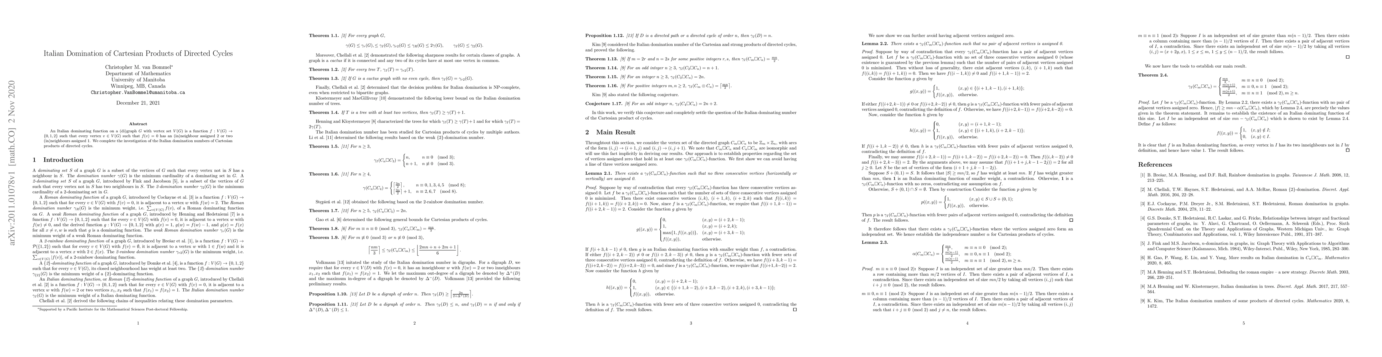 This paper studies Italian domination functions on Cartesian products of directed cycles, determining the Italian domination number for these complex (di)graph structures. The findings provide a comprehensive understanding of how Italian domination operates in such graph compositions.