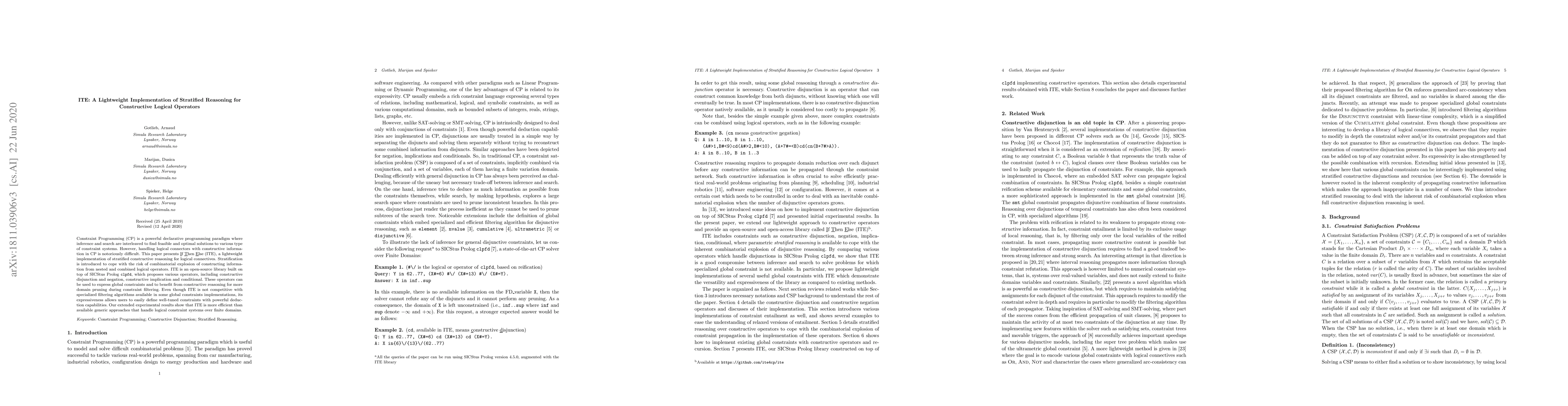 This paper introduces ITE, a lightweight implementation of stratified reasoning for constructive logical operators in Constraint Programming, aiming to manage the complexity of nested logical connectors. ITE offers constructive reasoning capabilities for global constraints, enhancing domain pruning, and proves more efficient than generic approaches for logical constraint systems over finite domains.
