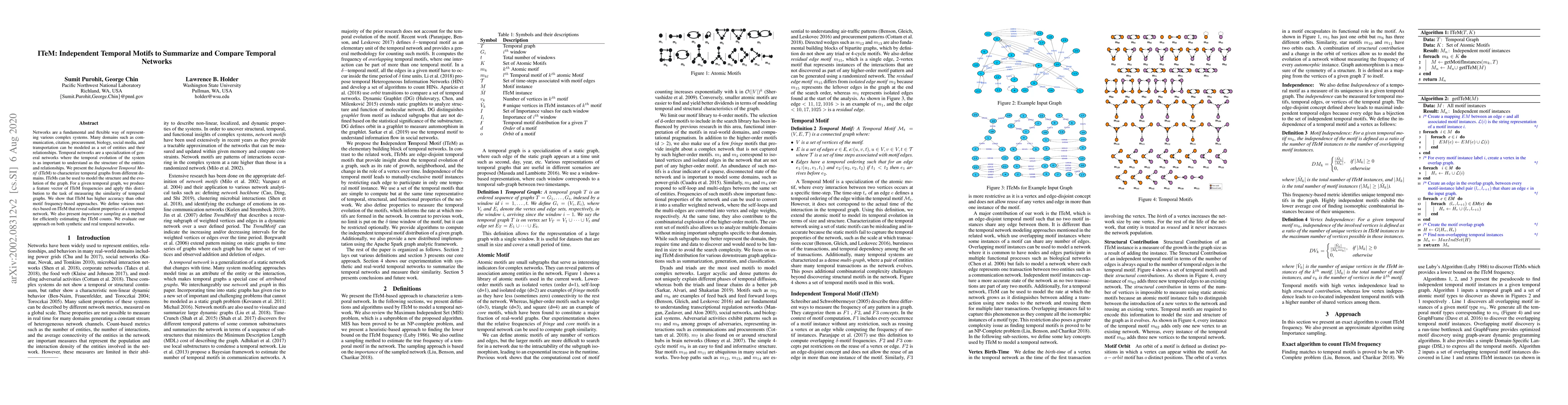 Networks are a fundamental and flexible way of representing various complex systems. Many domains such as communication, citation, procurement, biology, social media, and transportation can be modeled as a set of entities and their relationships. Temporal networks are a specialization of general networks where the temporal evolution of the system is as important to understand as the structure of the entities and relationships. We present the Independent Temporal Motif (ITeM) to characterize temporal graphs from different domains. The ITeMs are edge-disjoint temporal motifs that can be used to model the structure and the evolution of the graph. For a given temporal graph, we produce a feature vector of ITeM frequencies and apply this distribution to the task of measuring the similarity of temporal graphs. We show that ITeM has higher accuracy than other motif frequency-based approaches. We define various metrics based on ITeM that reveal salient properties of a temporal network. We also present importance sampling as a method for efficiently estimating the ITeM counts. We evaluate our approach on both synthetic and real temporal networks.
