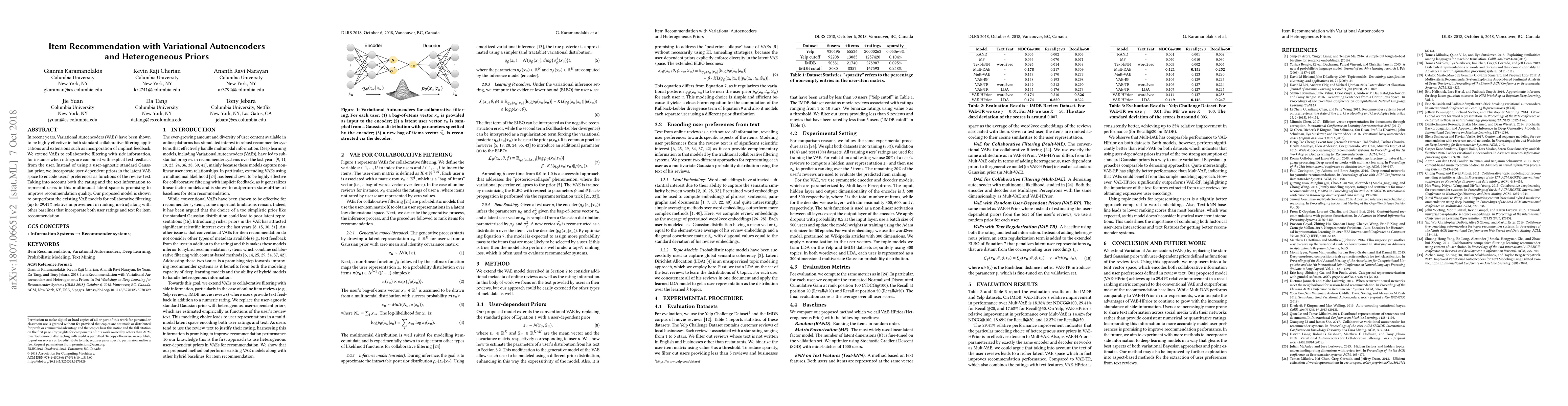 This paper proposes an enhanced Variational Autoencoder (VAE) model for item recommendation that incorporates user-dependent priors to encode user preferences based on both ratings and text feedback. The model shows significant improvements over existing VAE models and other baselines, achieving up to a 29.41% relative improvement in ranking metrics.