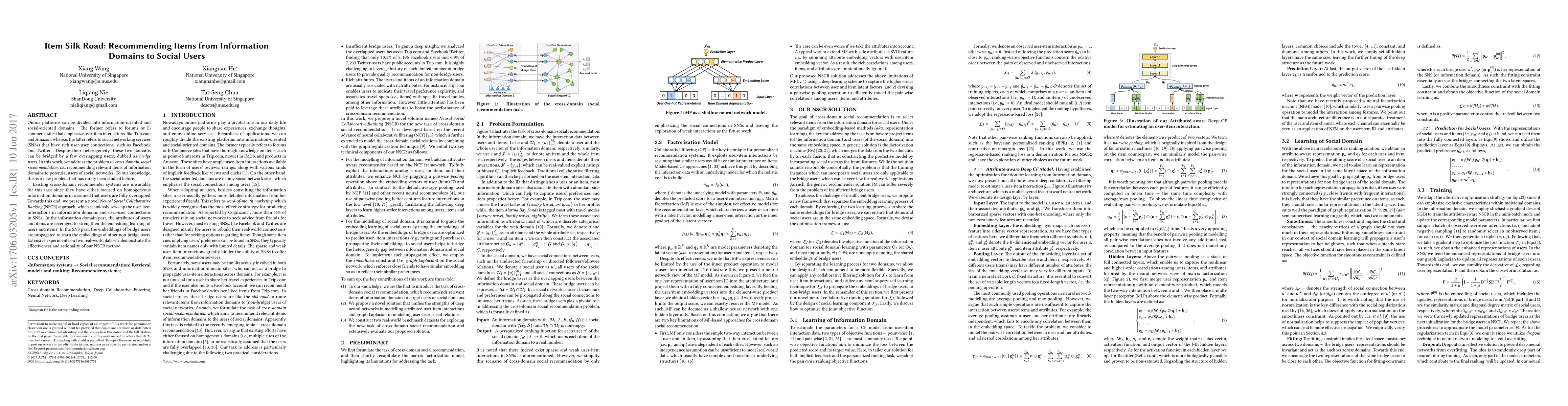 This paper introduces a novel Neural Social Collaborative Ranking (NSCR) approach to recommend items from information domains to users in social networks, addressing a new problem of cross-domain social recommendation. The NSCR method integrates user-item interactions from information domains and user-user connections from social networks, leveraging bridge users to bridge the two domains effectively. Experimental results on real-world datasets show the effectiveness of the proposed method.